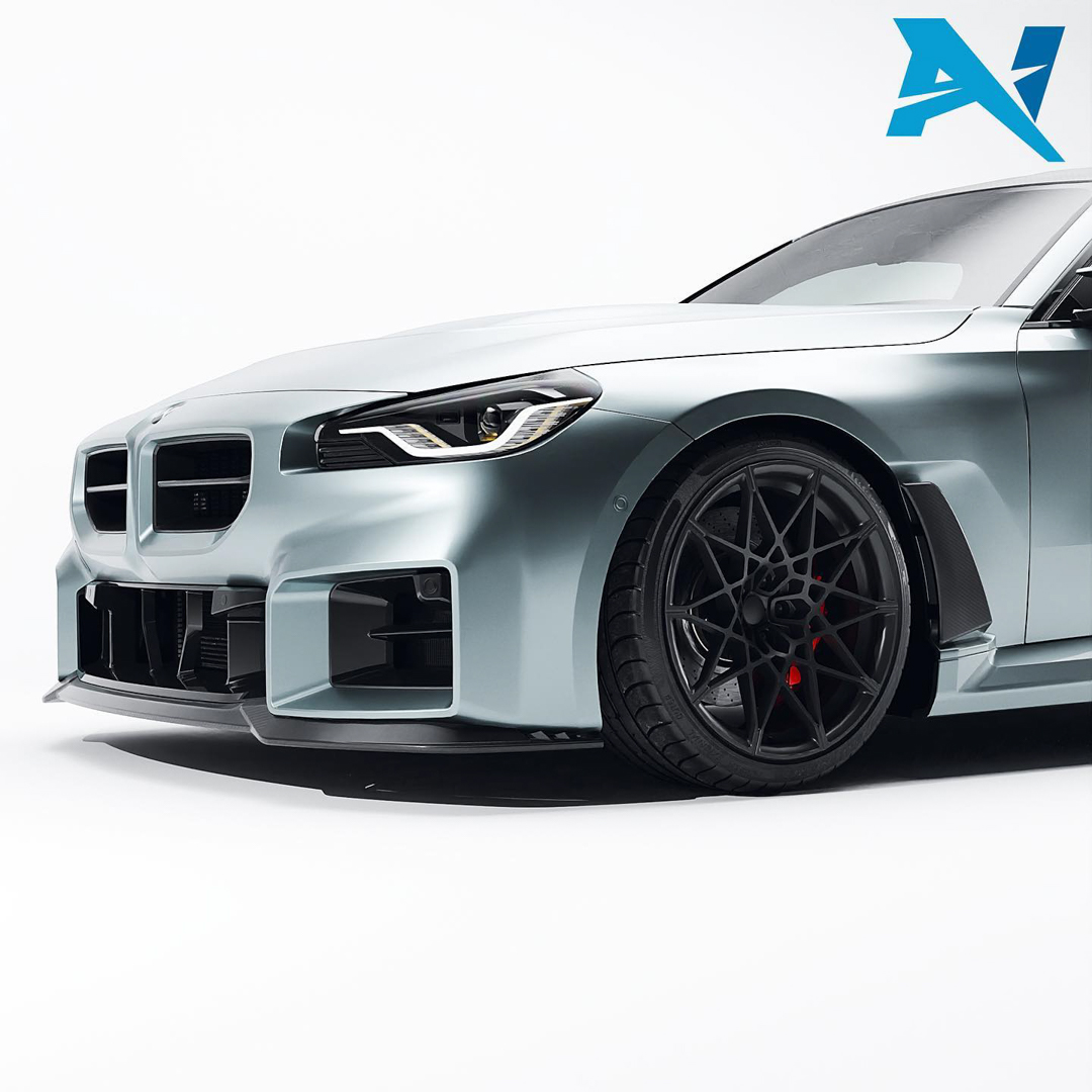 Alpha-N’s M2 GT is more aggressive. It has some of the aforementioned parts but also gets front fender vents, carbon fiber brake ducts, an adjustable front splitter, a massive fixed rear wing, and gurney flaps to accompany it. The M2 GT also uses Öhlins Road & Track coilovers but with adjustable dome bearings. Instead of Proline wheels, the M2 GT uses champagne-finished Edelweiss wheels in either a square 20-inch or a staggered 20/21-inch setup.