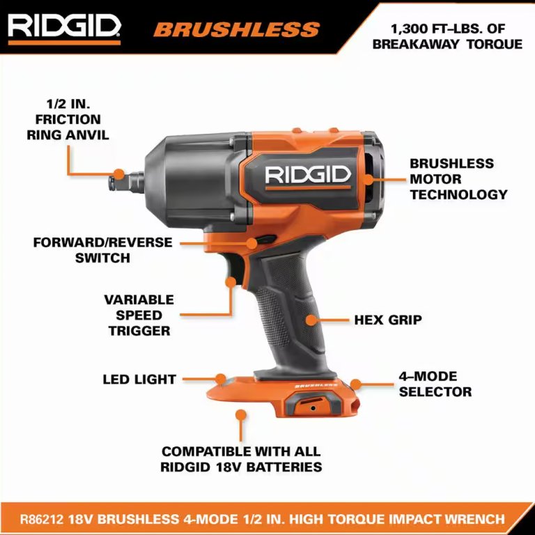 Rigid 18V Brushless High-Torque Impact Gun + Batt + Charger + Bag for $199 (save $358!)