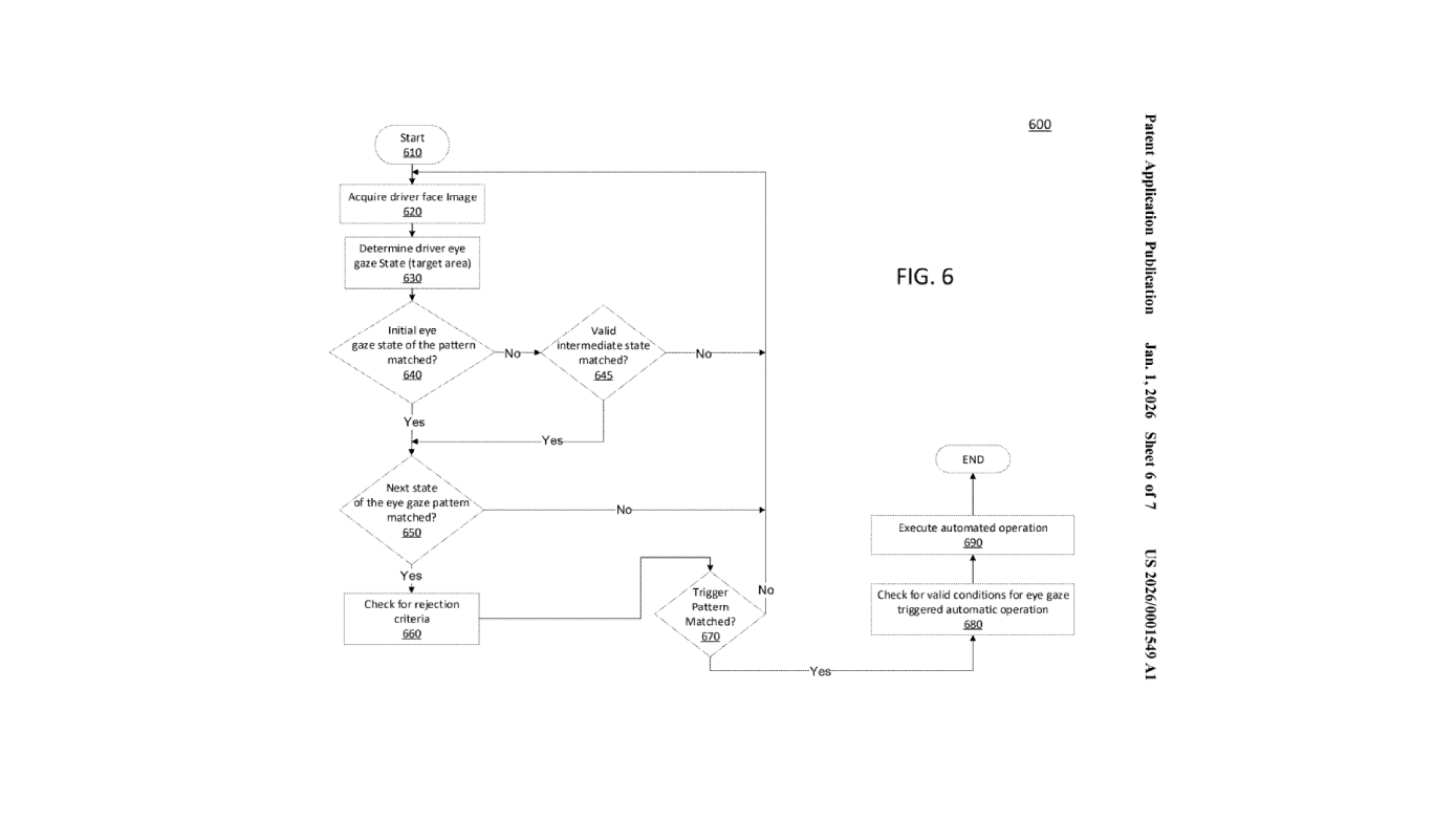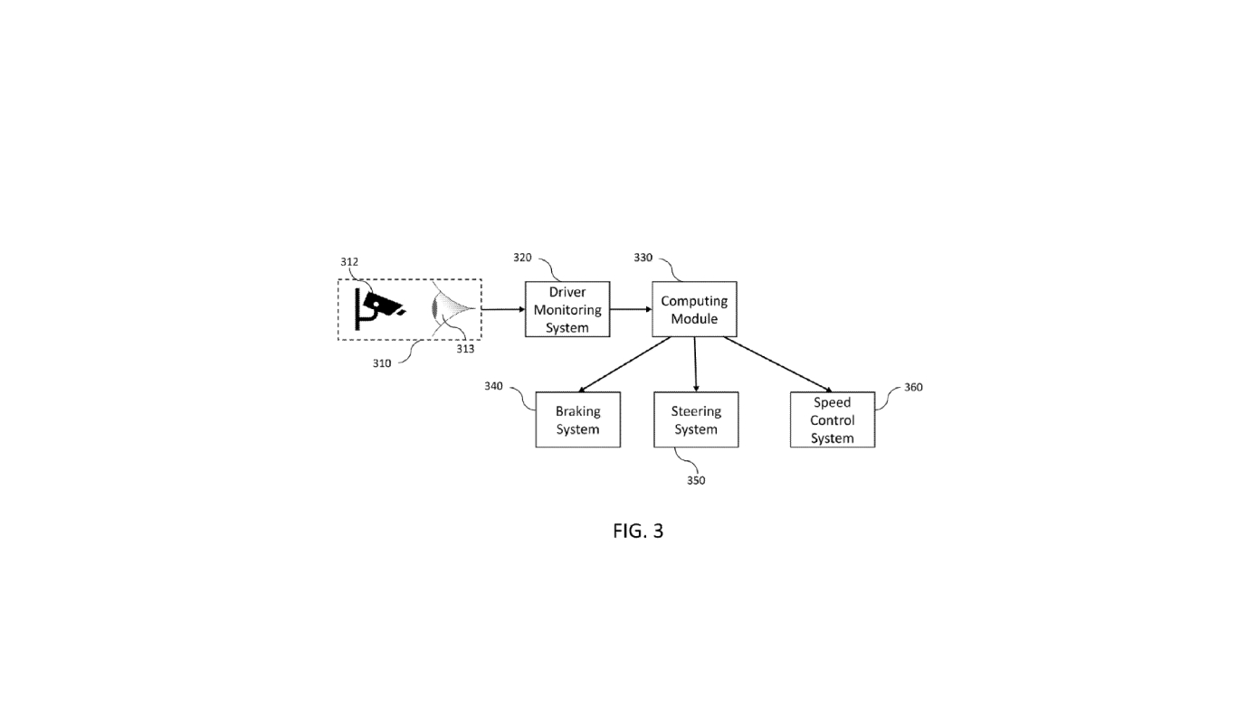 The patent application describes a system using an internal camera to stream video and monitor the “driver’s” (using that term somewhat loosely here) face. Using eye movements, the system would be able to determine when and where the driver would like to change lanes, triggering the action within the self-driving suite.