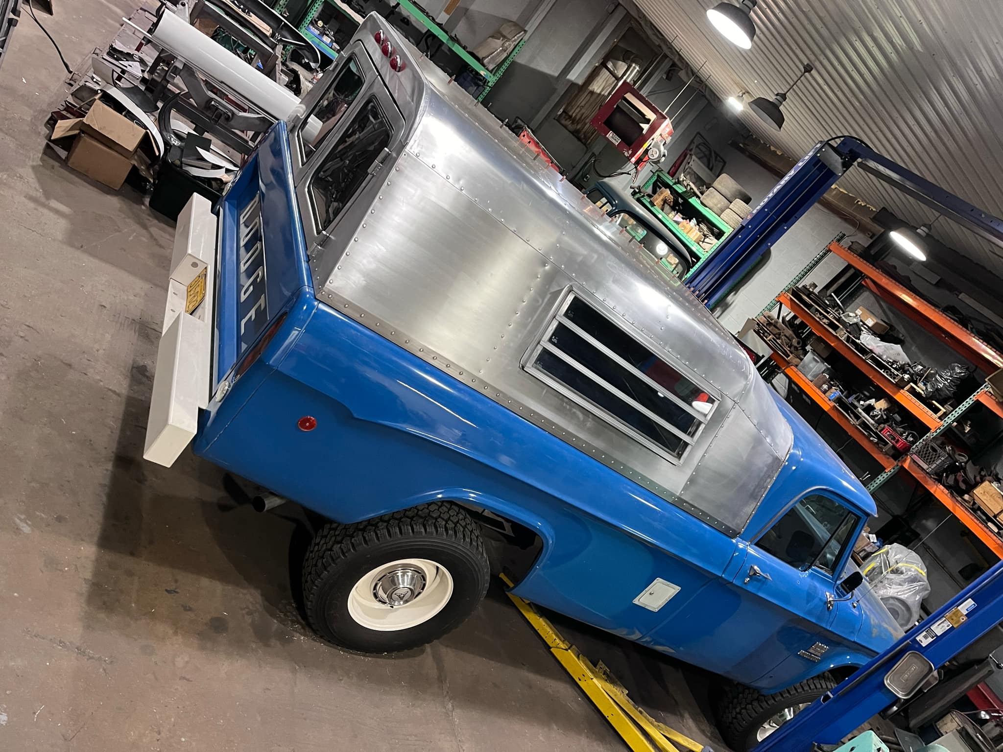 The end result is a one-off product that’s sharper than anything on sale. The finishing is top-tier with those stellar barn doors and hand-cut Lexan windows out back, plus the OEM Dodge running lights mounted just above them. It feels right to call it “vintage,” but it’s not—it’s brand new, made with old-school metal fab techniques. It’s a real beaut that cost Pitcher $1,200 in materials… plus all the equipment and time necessary to make it happen.