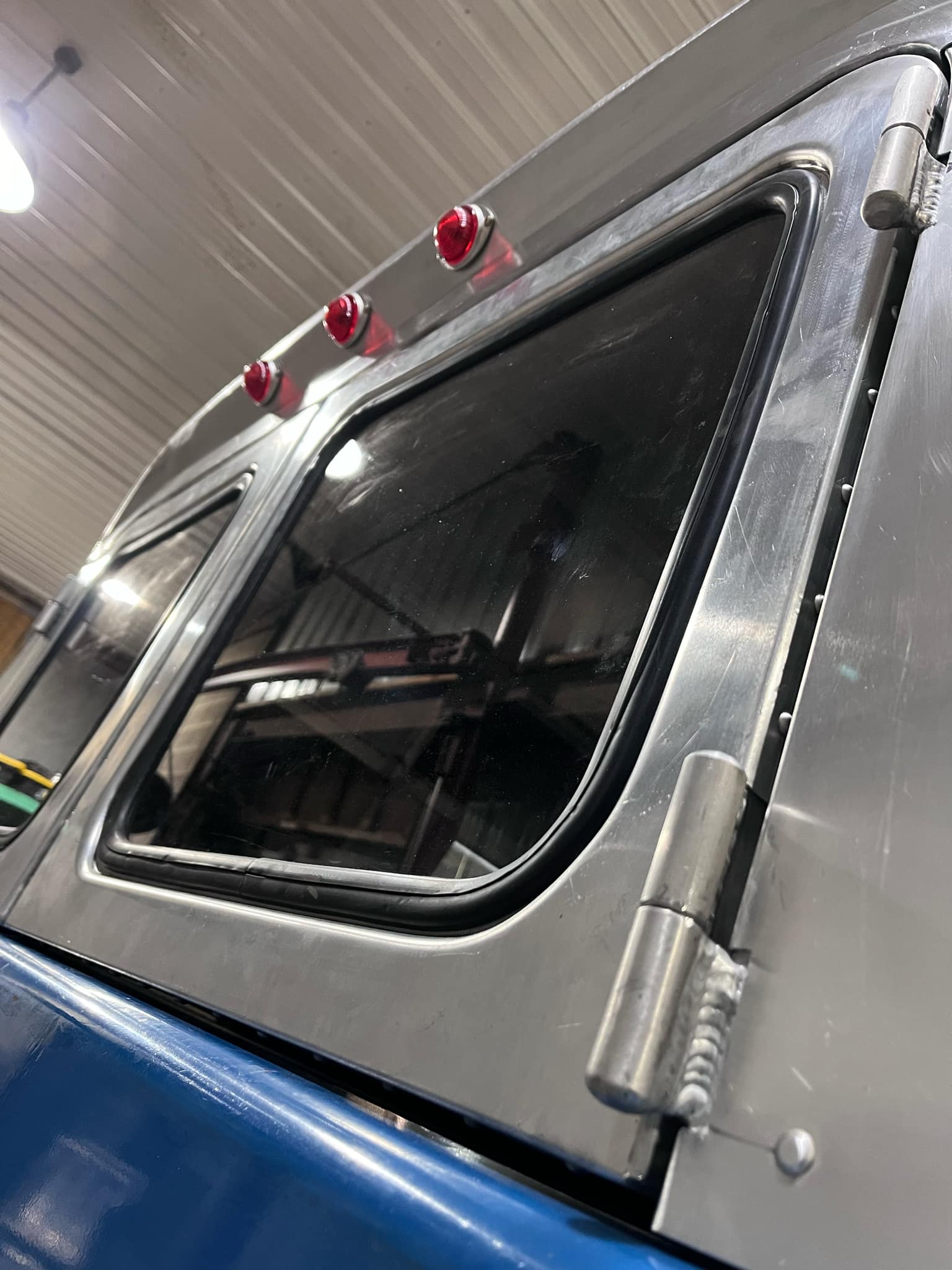With the frame in place, Pitcher installed a set of three-pane, crank-out VW Bus windows he bought off Facebook Marketplace. He got them for less than half the price of a new set—score!—and they measure out to 16 by 43 inches. They look like they were always intended for this bed cap.