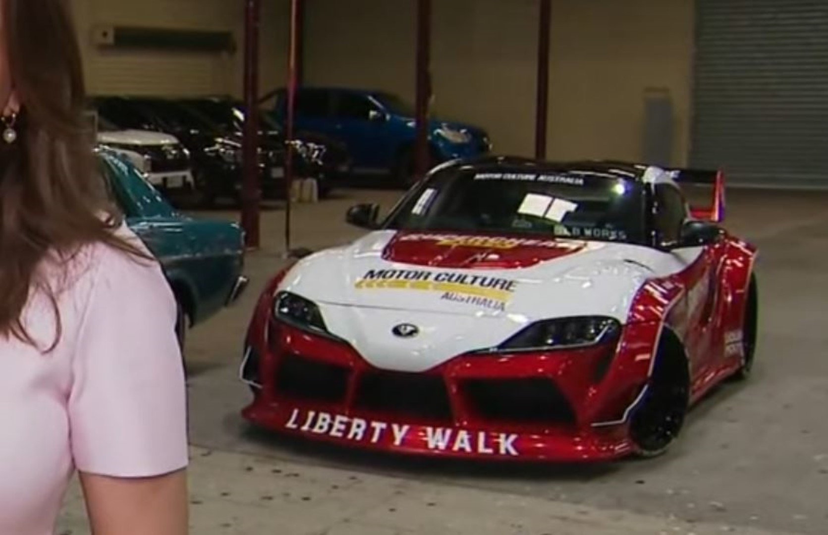Meanwhile, if you watch ’til the end, you’ll notice this peculiar crasher. Despite the automotive backdrop, a screaming-red Supra doesn’t really seem to fit the theme. If you look carefully, though, you’ll notice the SuperCheap Auto sponsor decal high on the hood, matching Vojic’s suit. Never change, brand placement. Never change.