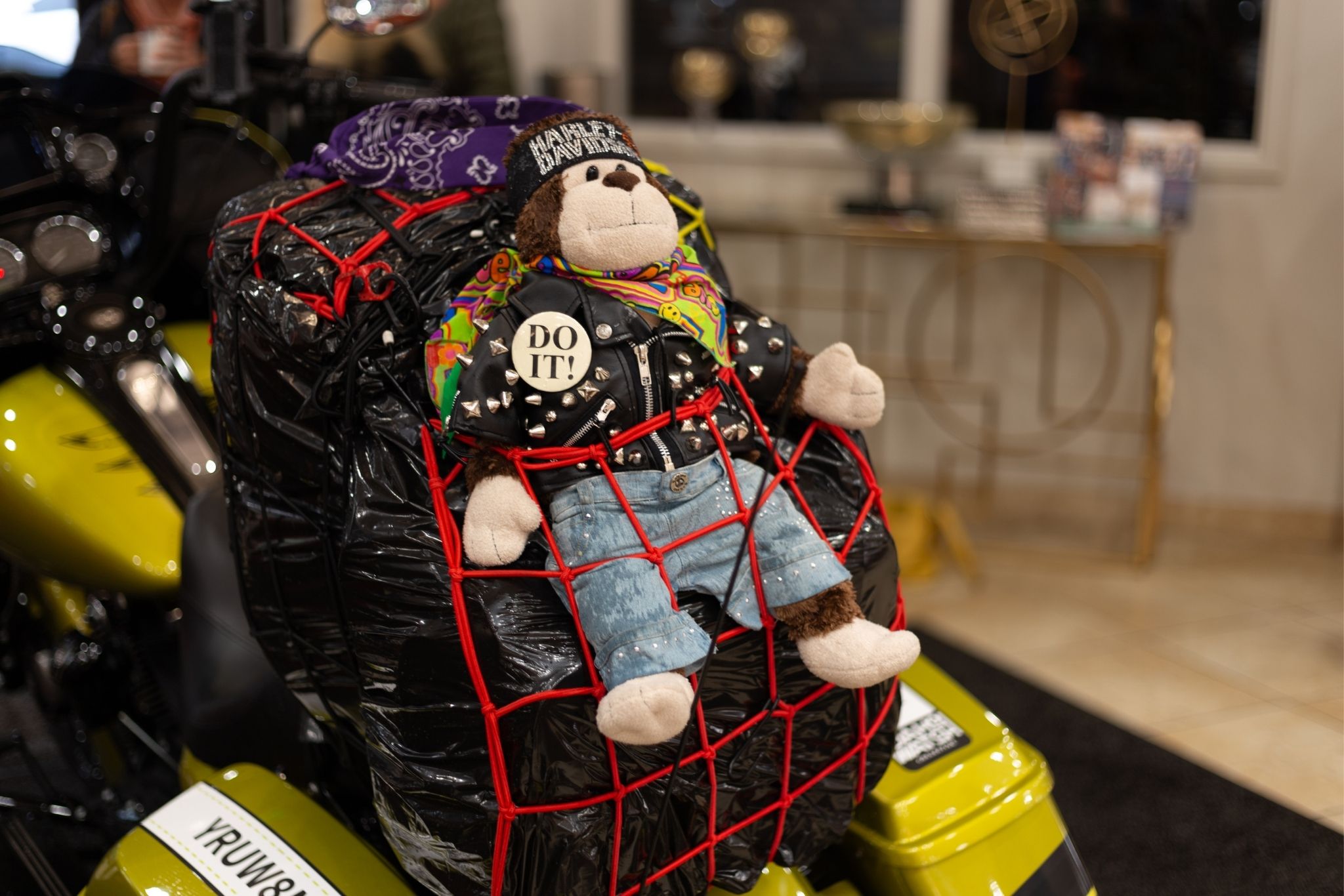 Pursell sold her previous Road Glide in early 2019 and put away her gear to grieve, scheduling two back surgeries during her downtime. She even buried her original stuffed monkey mascot Rockie when she thought she wasn’t going to ride again.