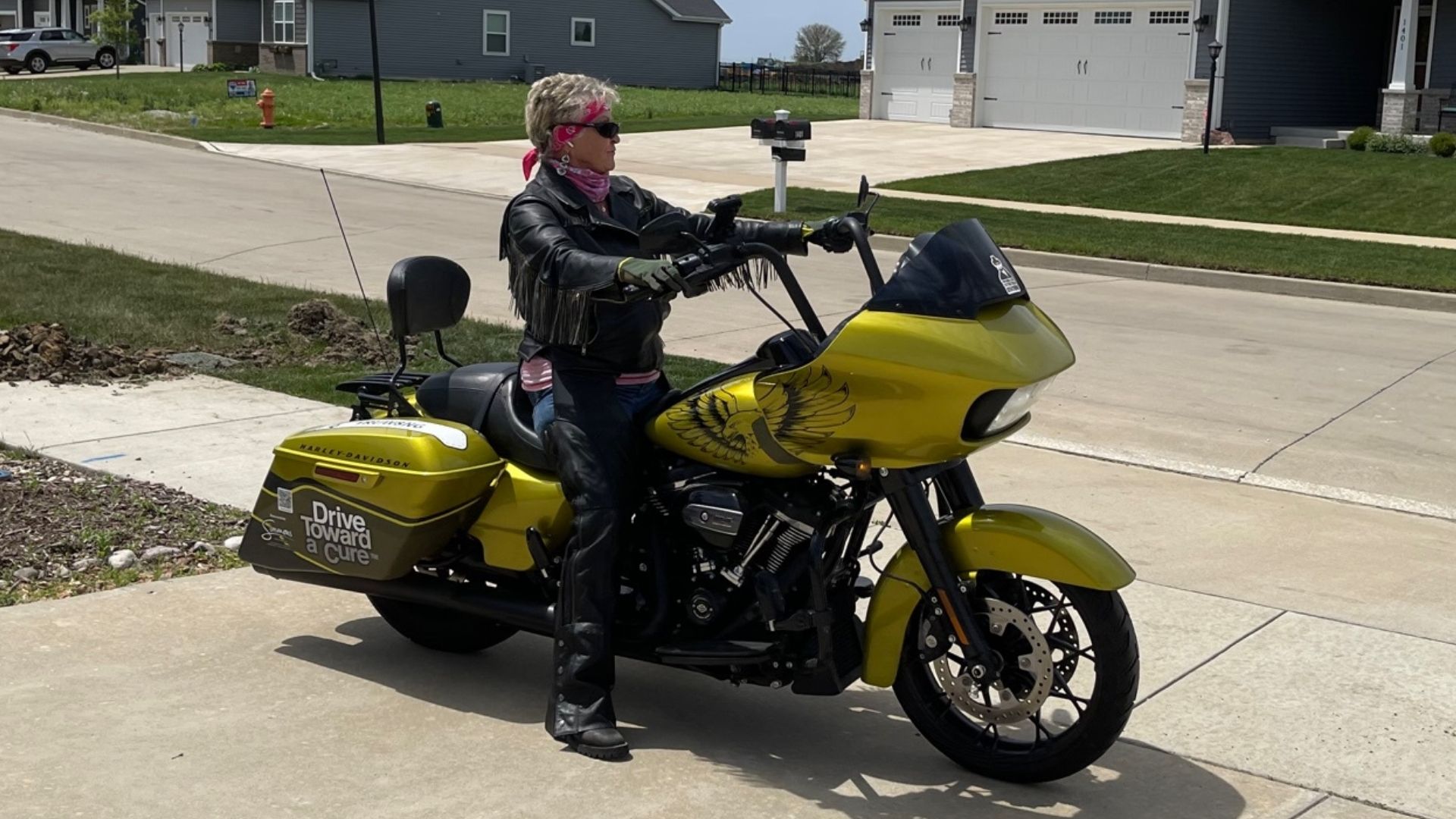 On May 9, the grandmother of six and her friend Mike Burke set off on an epic 34-day ride on their Harleys, Pursell on her yellow, eagle-emblazoned Road Glide, and Burke on his jet-black Fat Boy. For more than a month, the duo will check 18 states off their list as well as two Canadian Provinces with Pursell’s husband, Clyde Dornier, trailing behind in an Acura MDX. Her ride isn’t for sightseeing. Pursell is raising money for Drive Toward a Cure, which raises money and awareness for Parkinson’s Disease research and patient care.