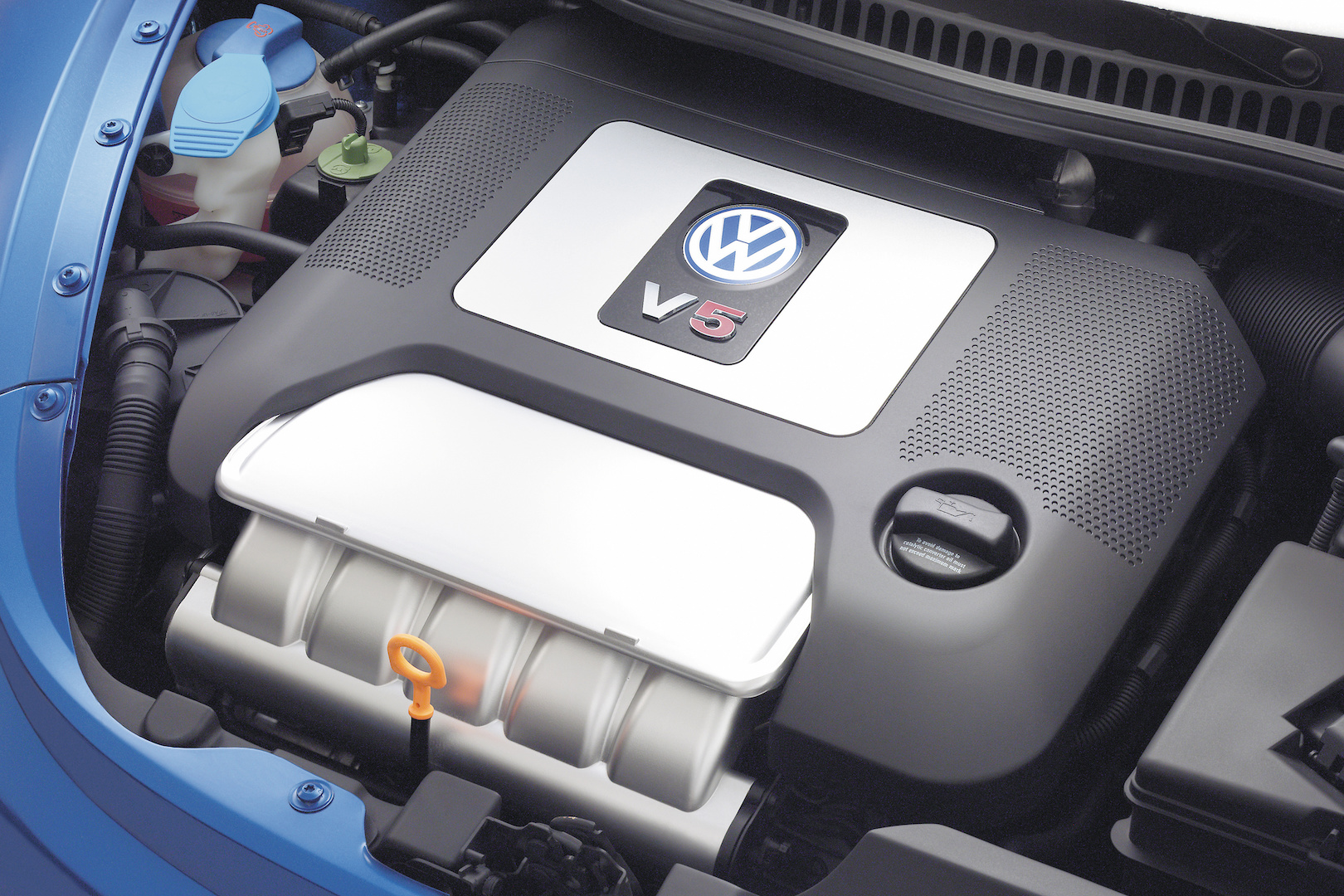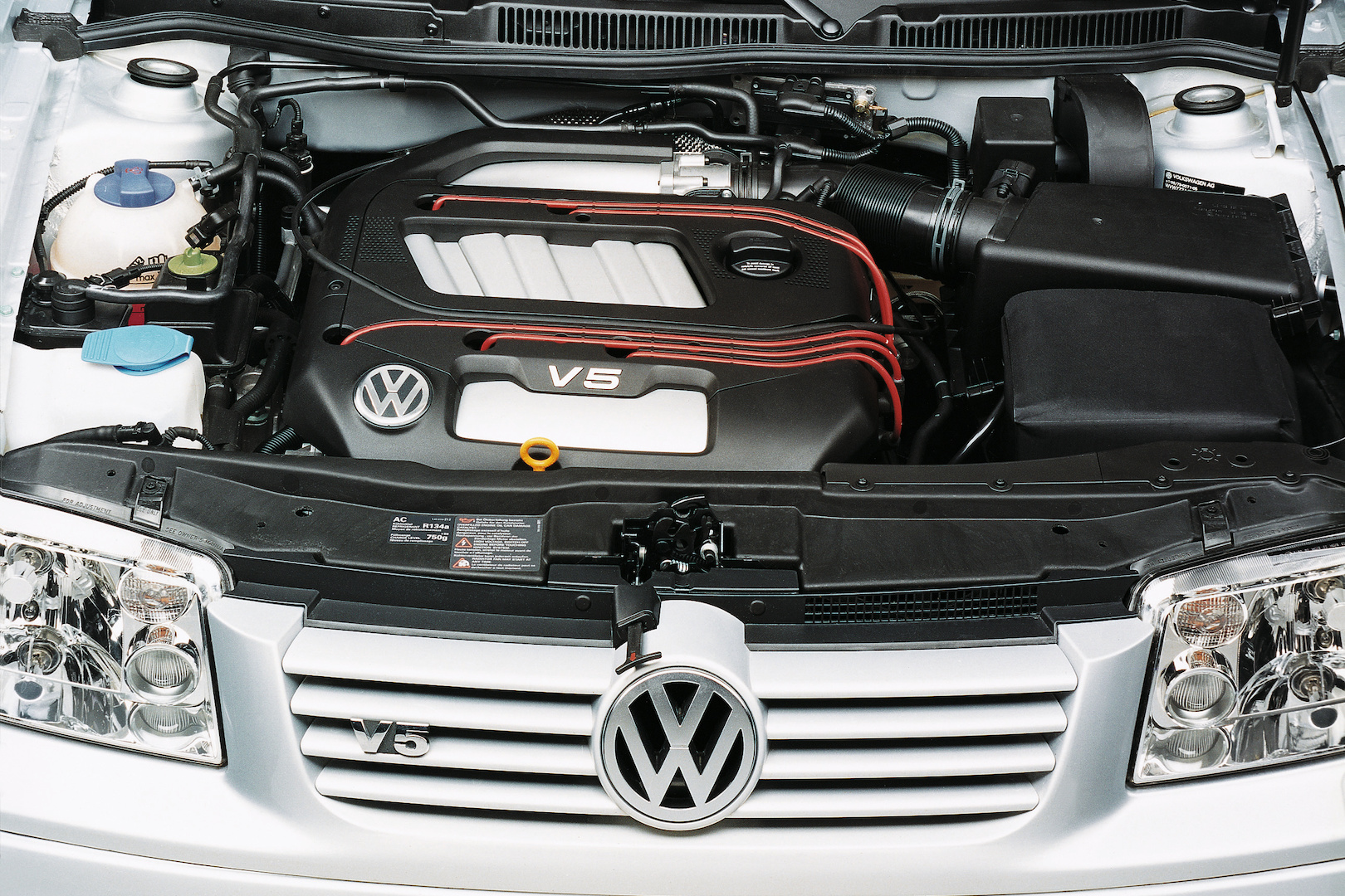 From the VR6, VW developed a smaller 2.3-liter VR5, which it made from 1997 to 2006. These five-cylinders had iron blocks and aluminum heads, initially with two valves per cylinder, but later upgraded to four with variable valve timing. They made 168 horsepower and 162 pound-feet of torque in the Golf, New Beetle, Passat, and Bora, but in only some markets, and only for a decade. The reasons seem obvious: It wasn’t very powerful for its displacement, but it was complex, and therefore harder to work on. (It was the second shortest-lived configuration of all the VR and W engine family, second only to the W8 which lasted three years.)