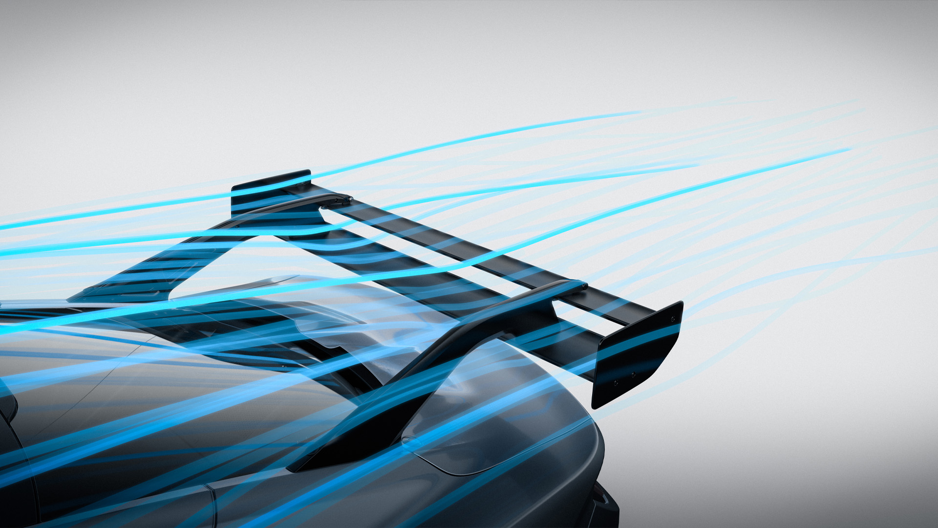 The most visible feature is the car’s Formula 1-style DRS rear wing. It works just like it does on open-wheeled race cars. When downforce is needed, it’s closed, forcing the rear end of the car into the ground to keep the car stable at high cornering speeds. On straightaways, it opens up, reducing downforce and the associated drag to attain higher top speeds more efficiently.
