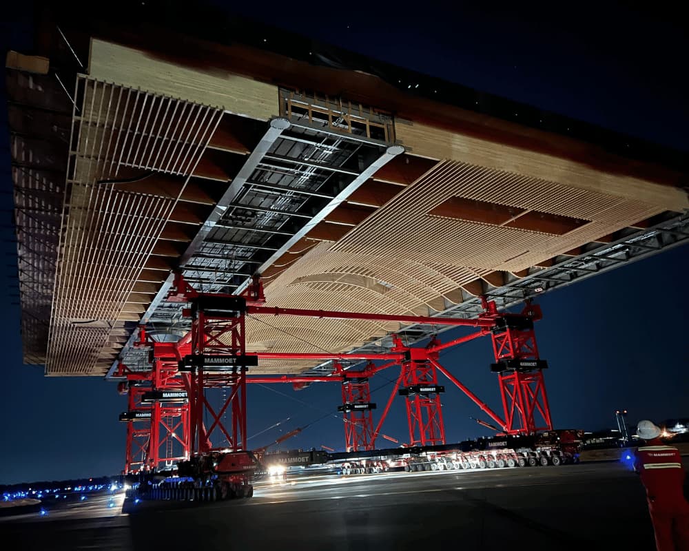 If you need to move some flatpack furniture, you might hang it out the back of your trunk. Move house, and you might hire a box truck. If you needed to move the whole roof of a structure as massive as an airport terminal, though, you have to get more creative.