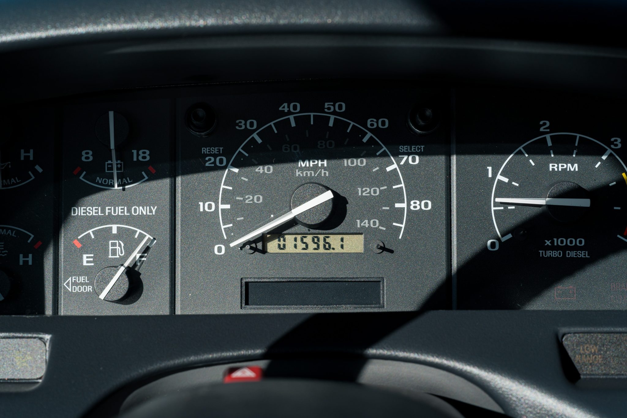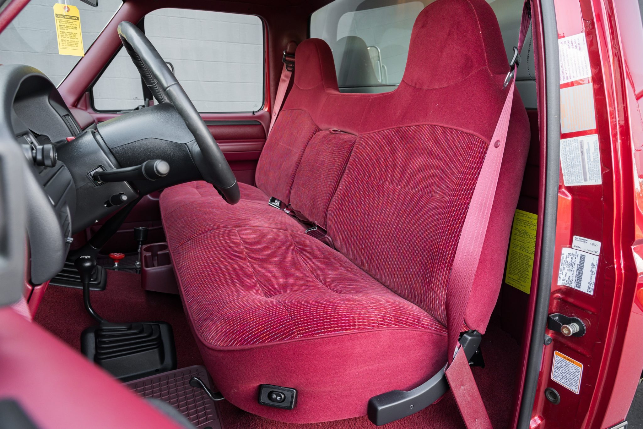 The Old Body Style 7.3-liter has driven 20 more miles since the last time we saw it, and it’s been living in Michigan after a short stint at Gateway in Missouri, near St. Louis. There don’t appear to be any new scratches, dings, or imperfections—as you can imagine, this is a pride-and-joy piece. It’s presented in the same pristine condition with 16-inch Weld wheels, a scantly scratched steel dump bed, and not so much as a mustard stain on the red cloth interior.