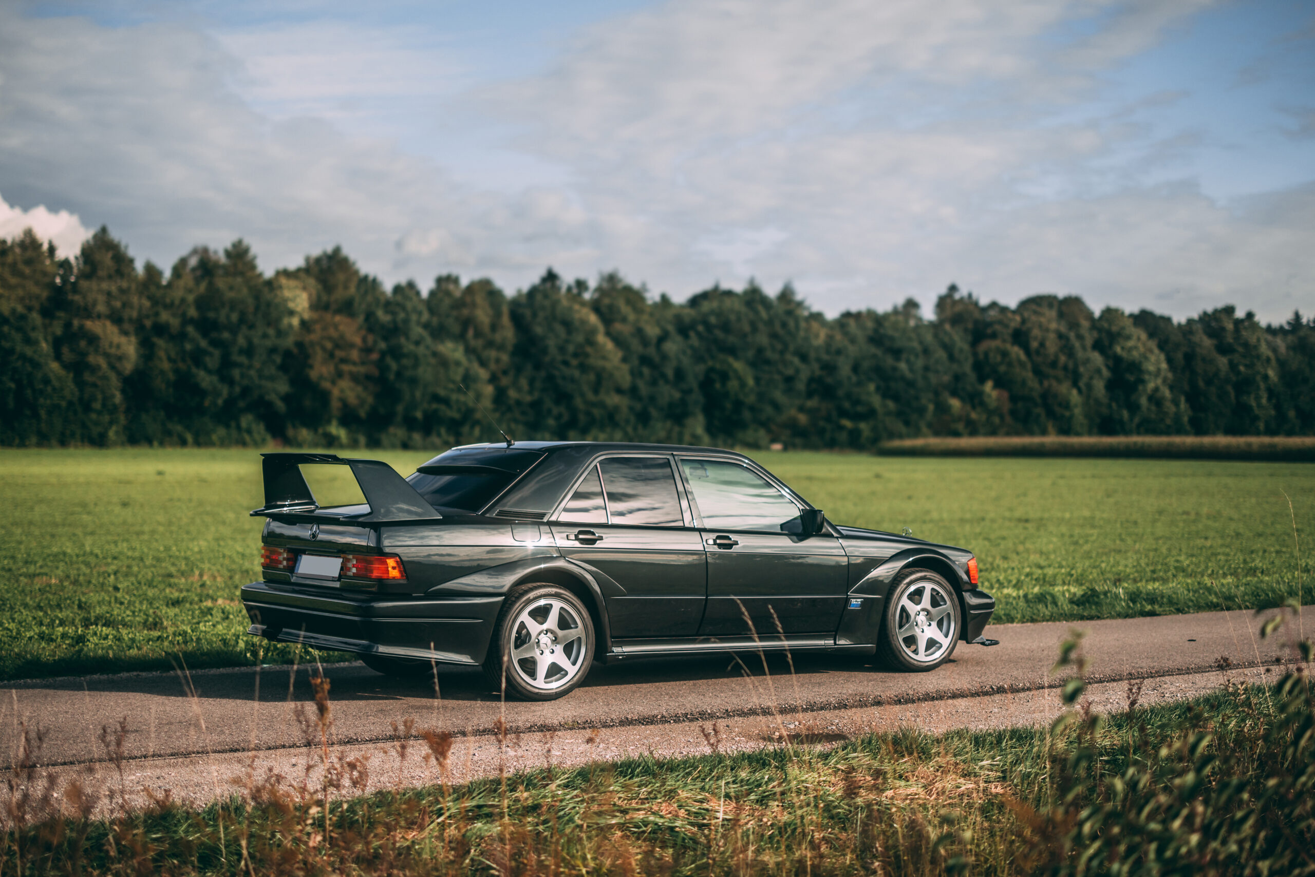 Per the auction listing, the car in question is a 1990 Mercedes-Benz 190 E 2.5-16 Evolution II. That’s a mouthful of a name, but highlights everything that is so special about this car. It’s the second special evolution of the 2.5-16 sports model, built in a run of just 502 examples to meet DTM homologation rules. This particular car is #229 of that limited run, finished in the factory Blauschwarz blue/black metallic paint, as were all examples bar the final two produced in silver.