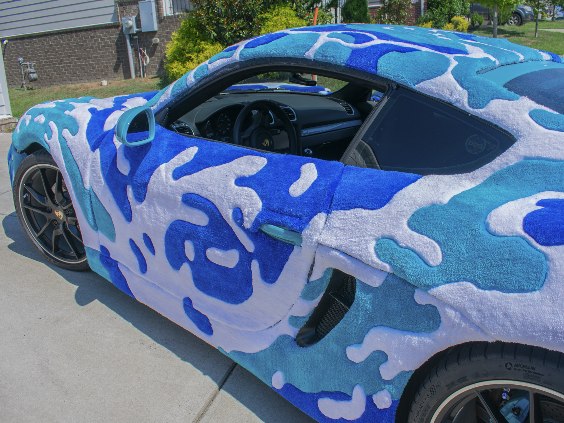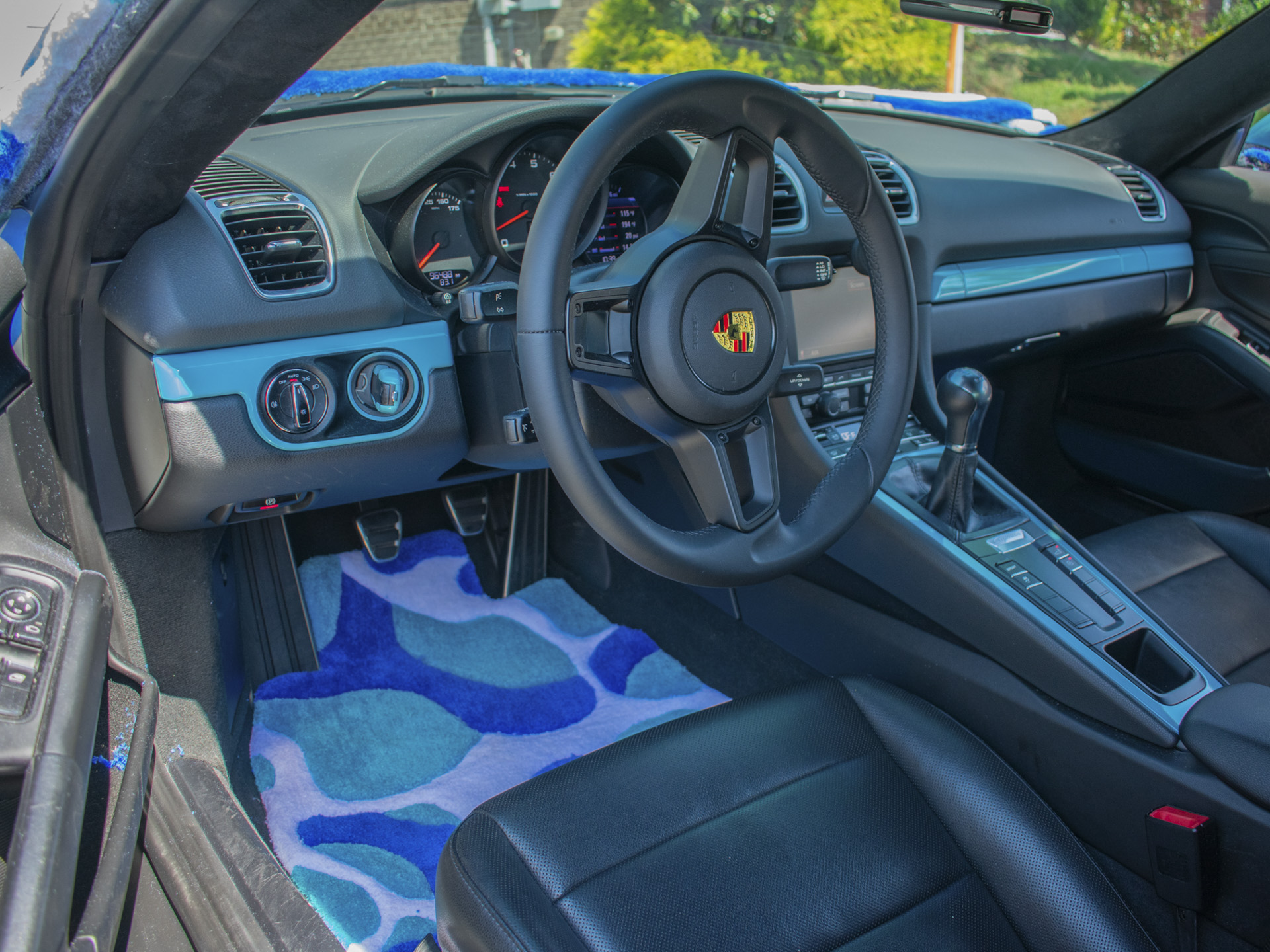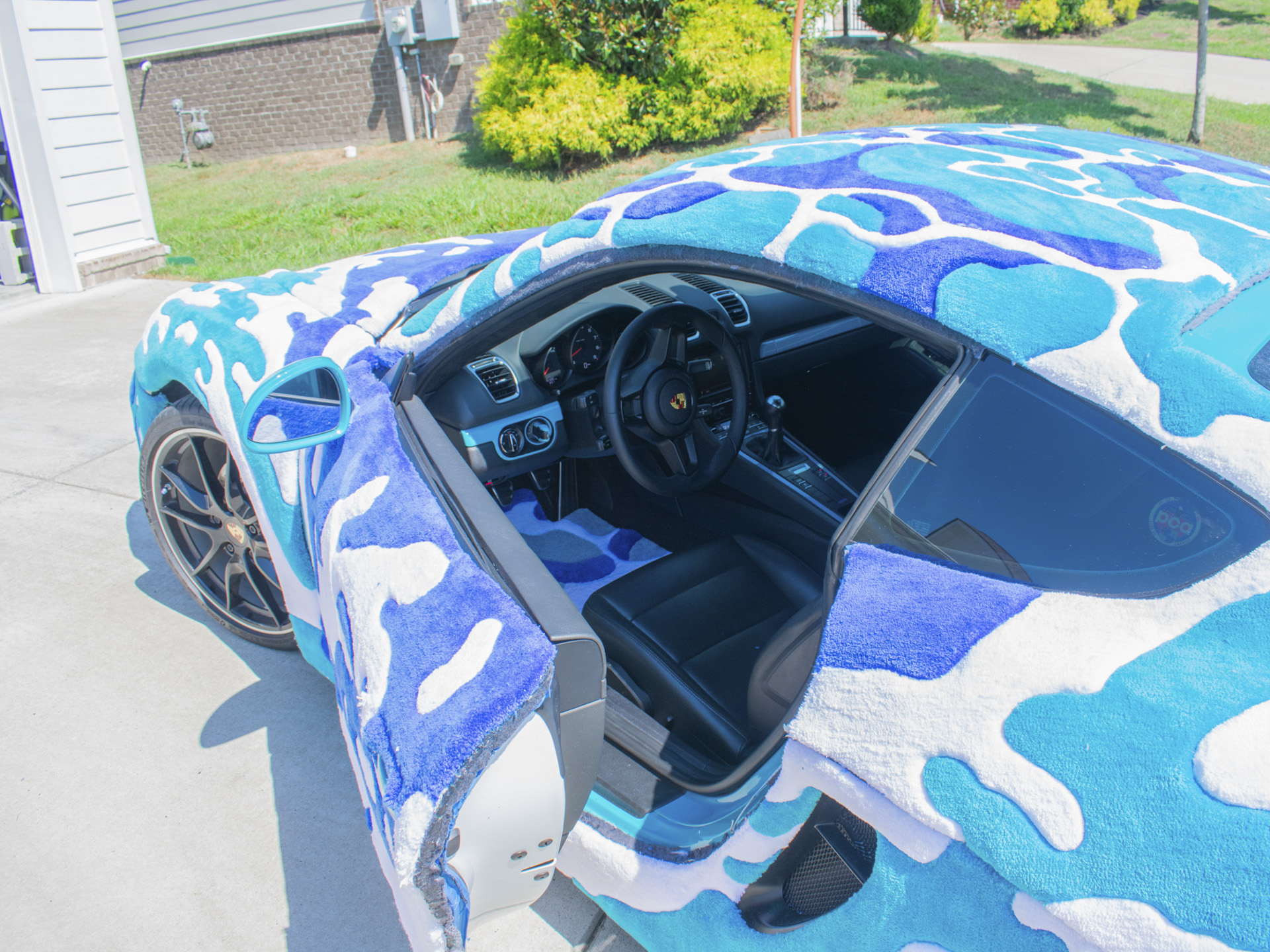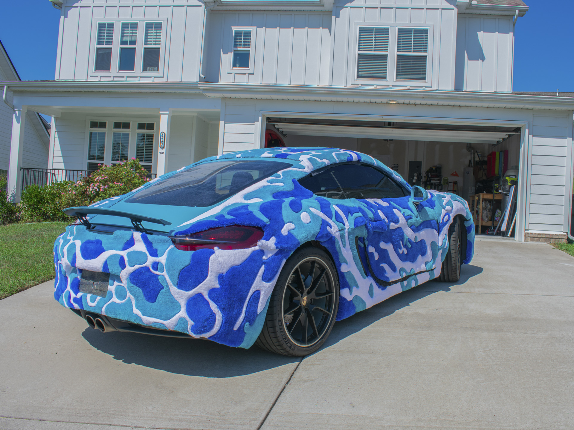 Automotive decals, body kits, and vinyl vehicle wraps are hardly unusual—but an exterior rug wrap? I’d never seen or heard of anything like Rachael the Rug Dealer’s wild Porsche Cayman until it popped up on my feed this summer. Don’t worry, the rug is removable when the car needs to be driven or left out in the rain. But this is a well-executed and extremely novel example of car customization.