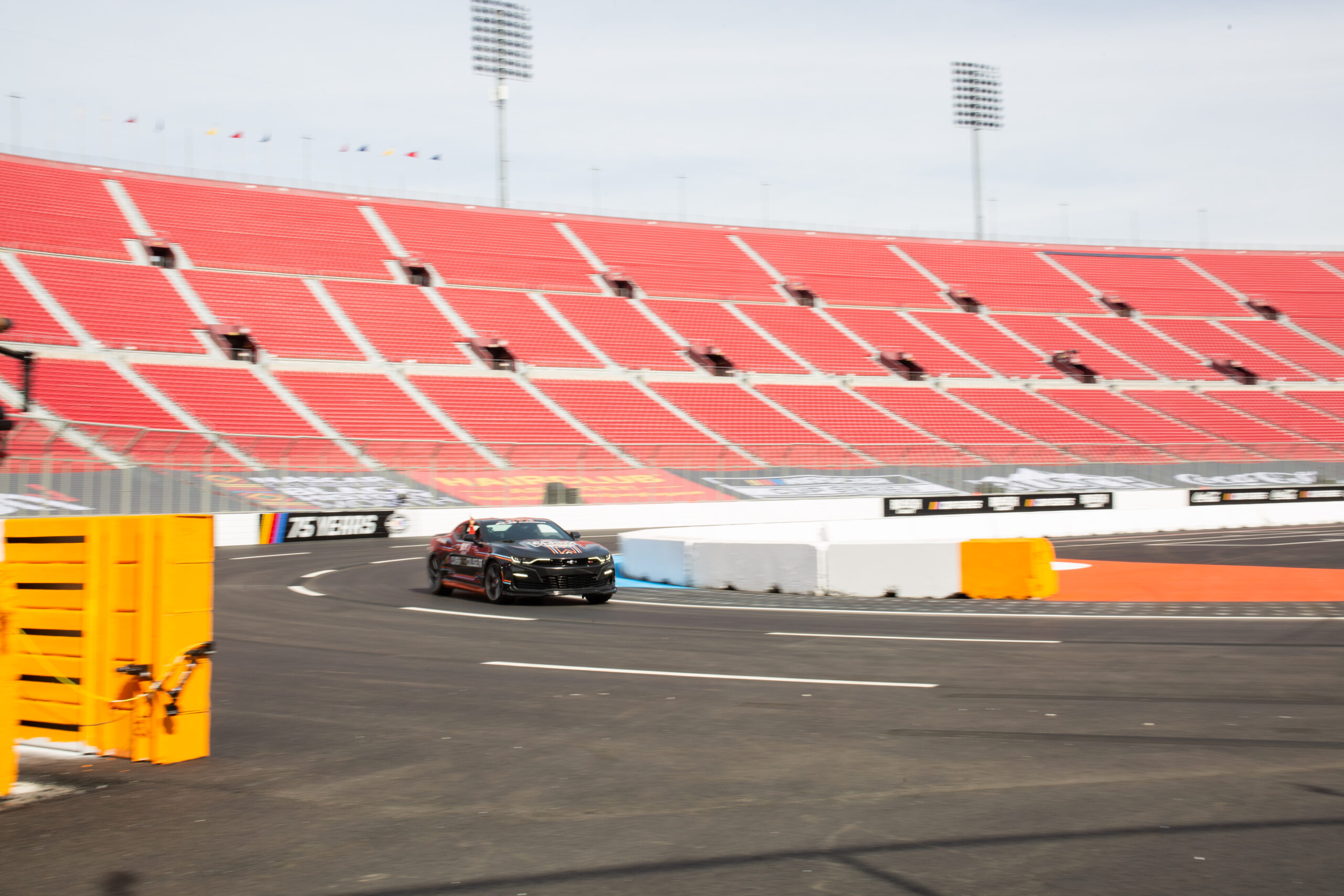 And the surface is impeccable. It was green and devoid of rubbering in, but ready for the Chevrolet Camaro SS pace car that would be my glorious chariot for two laps. The pilot? Up and comer Rajah Caruth, a charismatic NASCAR Craftsman Truck and Xfinity series driver. As racing drivers are complete aliens, we discussed his career during the ride-along while I attempted to not to look at the SAFER barriers that lined the track. He is one of only five black drivers competing in NASCAR and got his start with competitive sim racing, breaking through in the 2018 season of the iRacing eNASCAR Ignite Series.