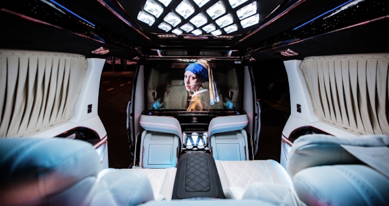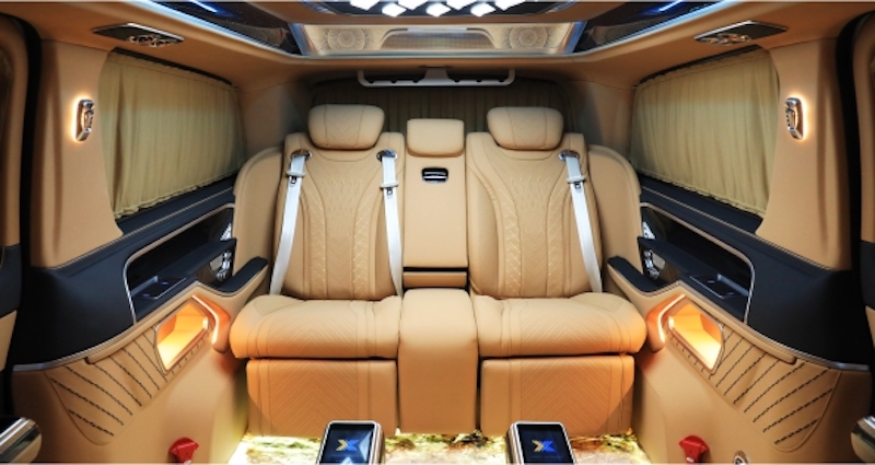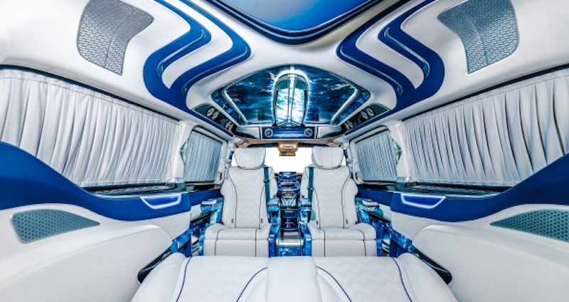 Based on the Mercedes-Benz V-class van, the Vulcanus Venus has several available interior and styling schemes, all of which have a few common features. Fully reclining seats, a handmade leather interior with window curtains, and names inspired by science fiction. All of them tend to saturate users with screens, which while I’m sure is an iPad Kid’s idea of luxury, actually sounds to me like a blue light hell to me. To each their own, I guess.