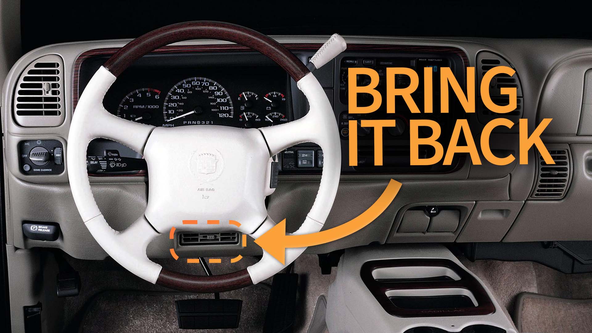 In case you’ve missed out on this infinitely practical feature, let us explain. The crotch vent is an HVAC opening that’s strategically placed underneath the steering column on a dashboard. You can aim it straight between your legs on a hot day, and it’s brilliant. While modern-day seat coolers can help do away with some of the sweat under there, that front-facing dashboard vent simply did a far better, more direct job of drying up that unpleasant between-the-legs sogginess that doesn’t make direct contact with the seat.
