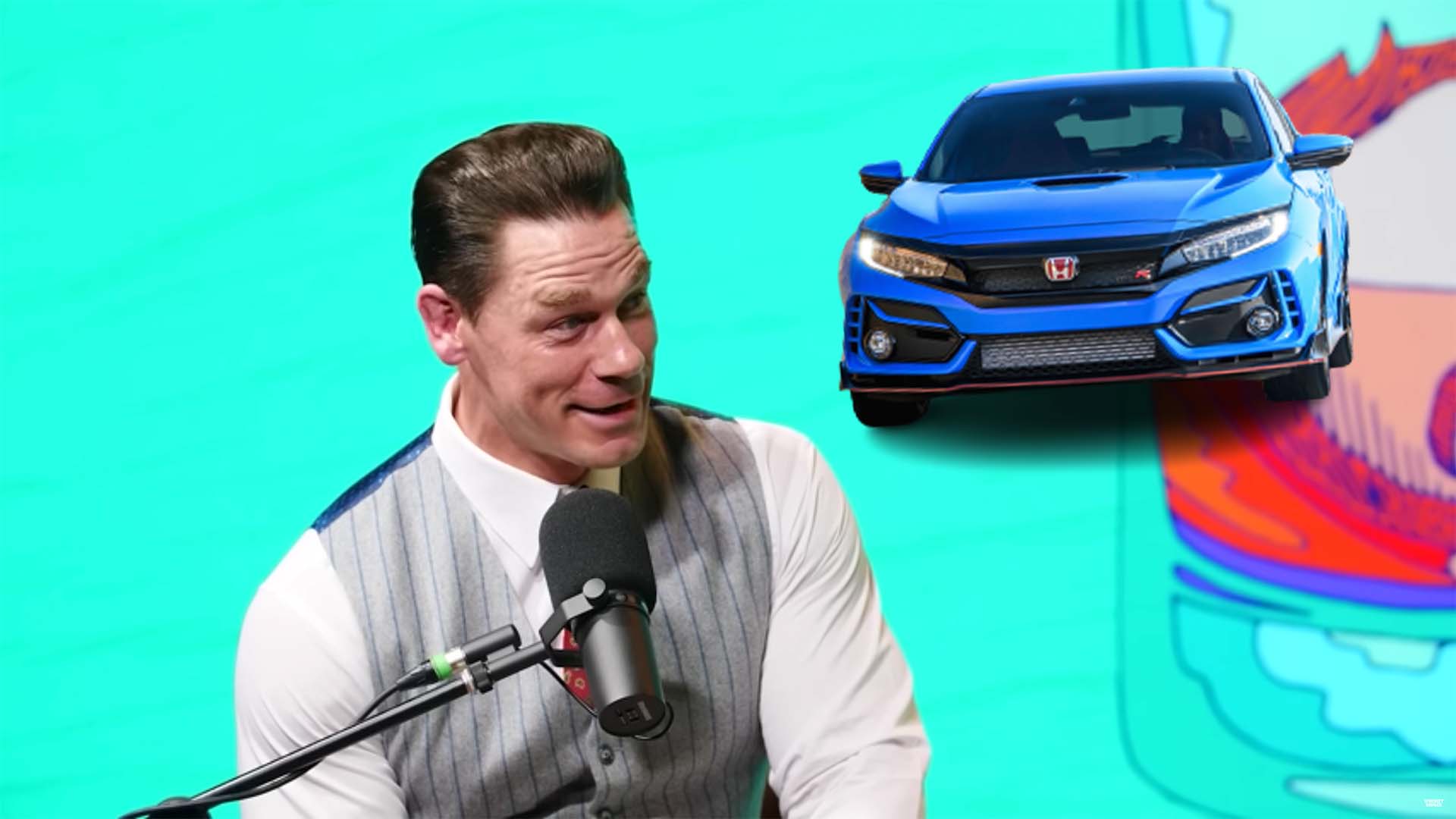 “My daily driver is a [Honda] Civic Type R. It’s got tech, it’s manual, reliable,” Cena said on an episode of Andrew Santino’s show Whiskey Ginger. “Dude, it’s a 2020, and it’s got a third pedal, and at 145 [mph] it’s stable. Like, it goes. It’s got seats in the back, I can actually pick people up.”