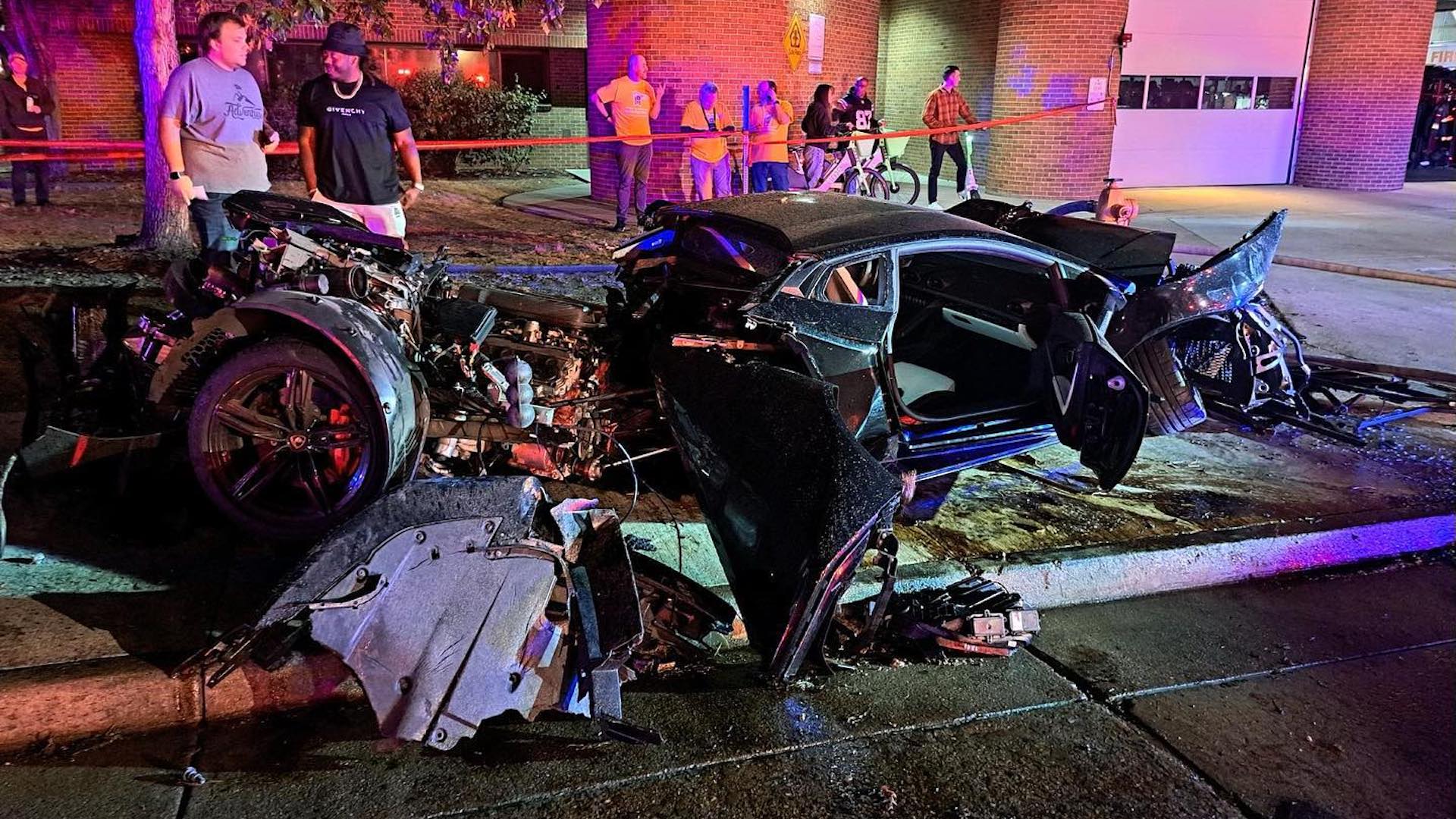 Pictures of the aftermath shared by the Denver Fire Department on Facebook show a dark blue Lambo on the sidewalk thoroughly disfigured, with its mid-mounted V10 and entire rear-end dislodged from the rest of the car. The other car, a purple Huracan, isn’t quite as destroyed as the other one but saw its passenger door, front end, and rear end heavily damaged.