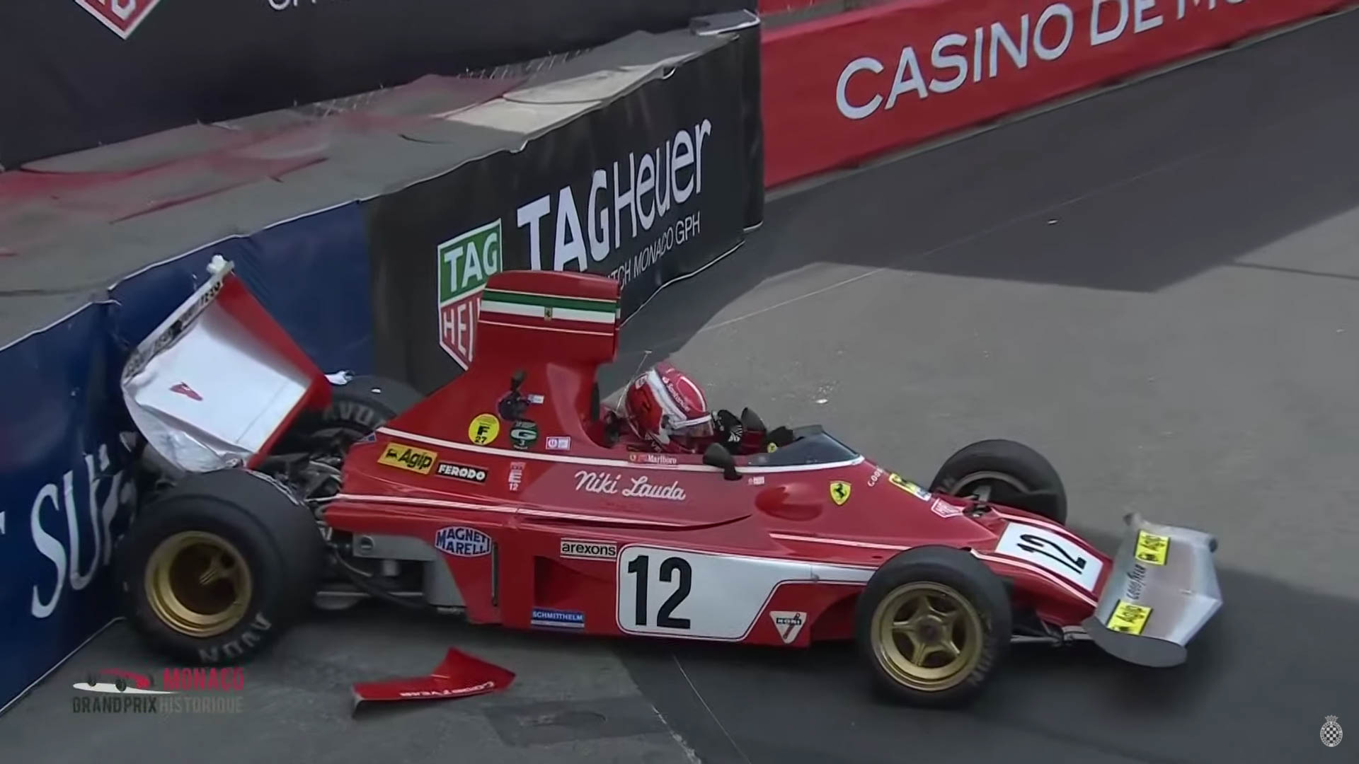In between this season’s F1 races, Ferrari driver–and current leader in the driver’s standings–Charles Leclerc participated in the iconic Monaco Historic Grand Prix earlier today, driving Niki Lauda’s former championship-winning 1974 Ferrari 312T. Unfortunately, what must have been an incredibly special moment for Leclerc ended in embarrassment, as he spun the legendary Ferrari into the wall at rascasse.
