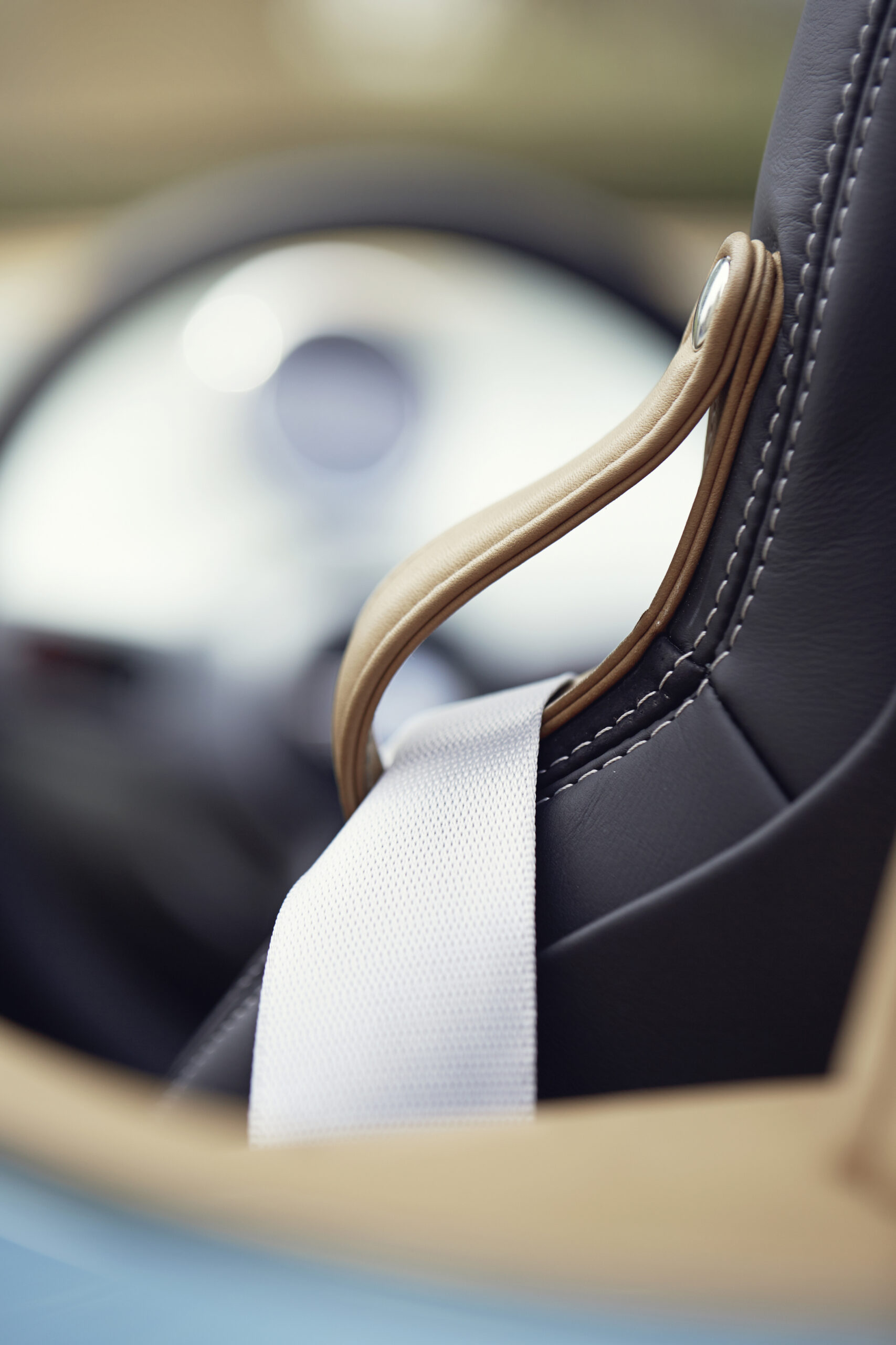 Inside, things get even more striking with the dashboard that Mini said was made from a single sheet of exposed aluminum. The door panels feature something that looks like a bundle of sticks held together by a leather wrap and the whole thing is terrifically mini(heh)malist. I also really dig the black-on-tan color scheme. I think an all-tan interior would have been a bit overwhelming, but this walked a good balance.