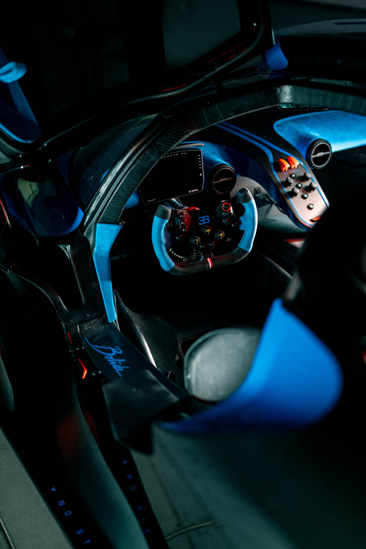 Looking inside the Bolide, you won’t find the same sumptuous leather or beautiful trim work. Instead, you get fixed carbon fiber racing buckets, an F1-style racing steering wheel replete with a dozen labeled buttons, a small digital gauge screen, and a few switches mounted to a carbon fiber center console. Stripping out all of the Chiron’s luxuries, as well giving it an all-new carbon fiber body, drops the Bolide’s curb weight to just 1,450 kilograms (3,196 pounds). So it’s lighter than a Porsche Cayman GT4 RS but makes more than triple the horsepower. I guess that’s why Bugatti claims it can got from 0-311 mph in just 20 seconds.