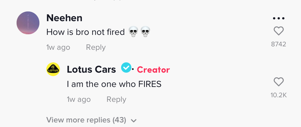 While most corporate social media is full of boring product announcements and lame videos from leashed interns, Lotus absolutely leaned into the unhinged insanity of TikTok. I mean, just scroll through a few of these videos.