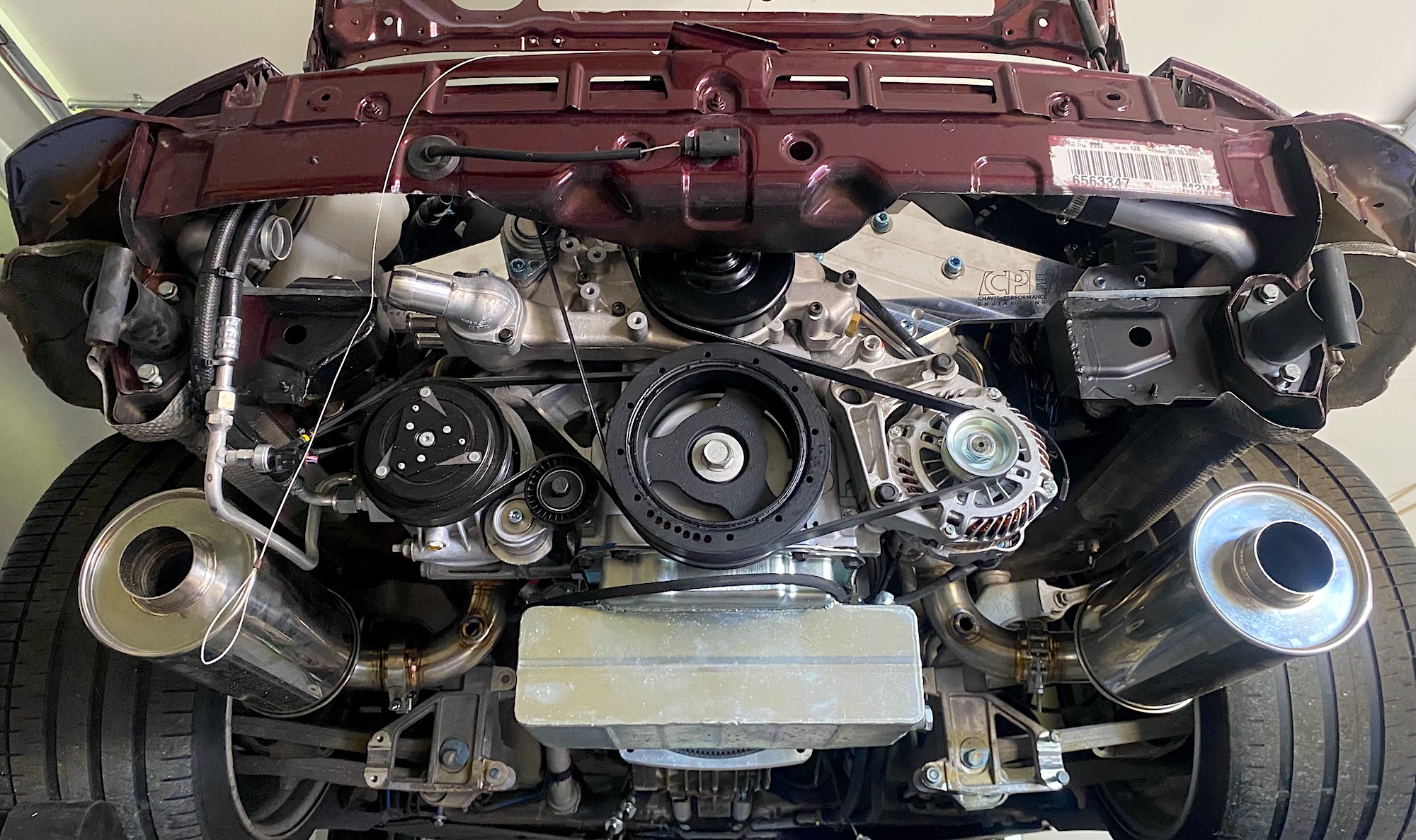 Chavis knows a thing or two about sticking non-flat engines in Porsches. The two parties determined that the best course of action for filling the original M97 engine’s void with less expensive and more trouble-free motoring was to stick a GM LS engine in it and call it a day.