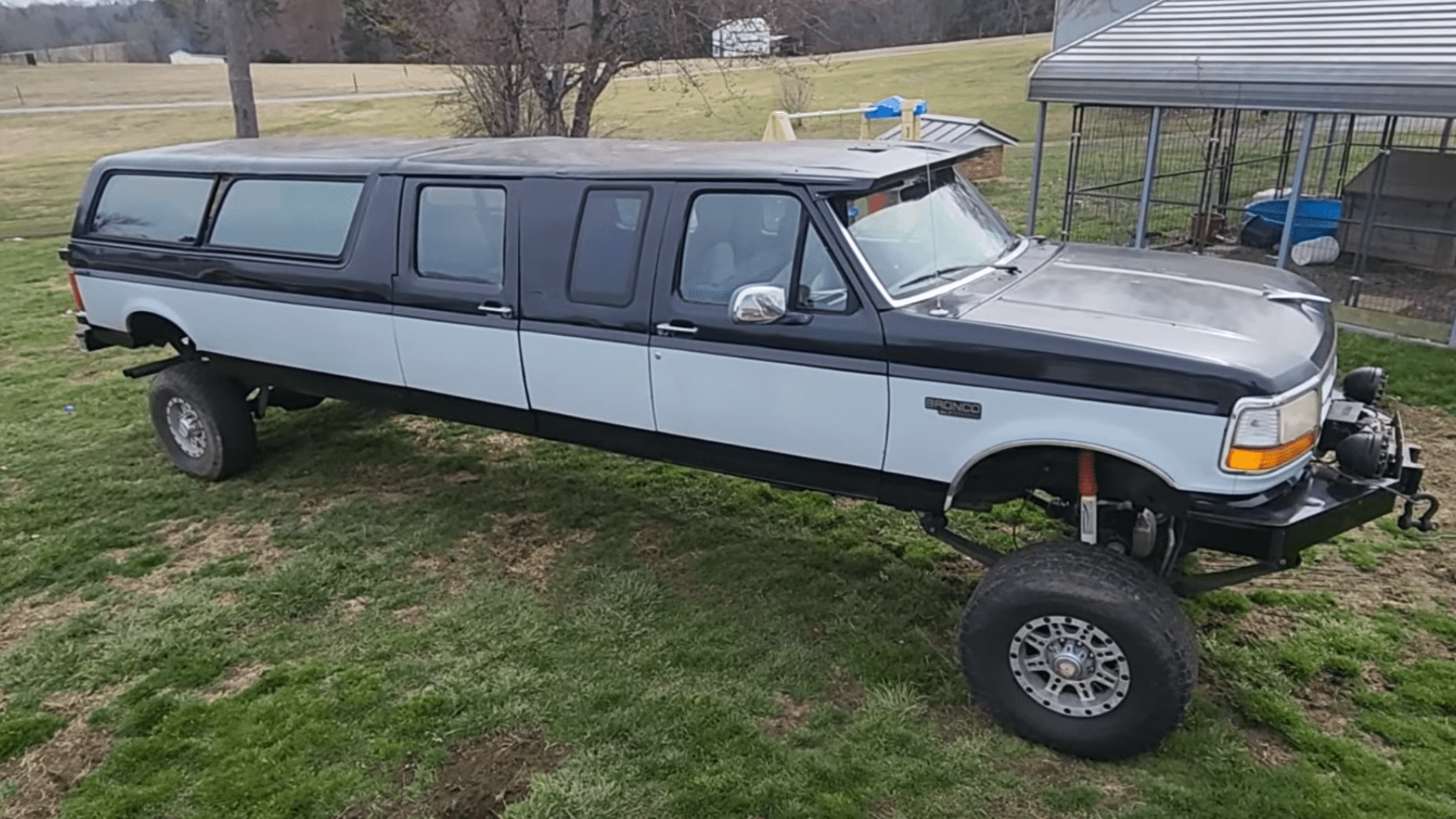 It sounds like a project begun under the influence (of what, I don’t know). What came out of this wild idea was a stretched mashup of five trucks, combining two Ford F-350s, one F-150, and two Broncos. You may ask “Why?” and this owner said, “Why not?”