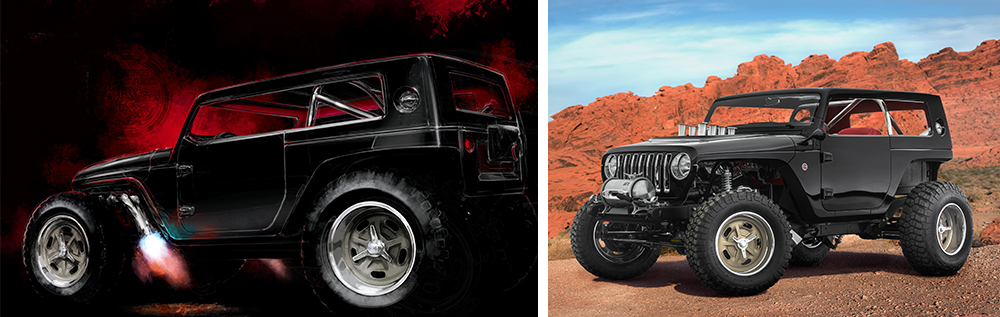 As Allen rose through the ranks at Jeep, he quickly became a part of the Underground, a team charged with designing and building one-off concept vehicles. One of his earlier projects was the 2004 Jeep KJ “Liberator” concept built for SEMA. Allen would later take the vehicle to the Easter Jeep Safari, marking the brand’s first official appearance there. It kicked off a tradition of Jeep rocking up to the event with new concepts to demo for the off-road faithful. Over the years, Allen continued his work on bold concept vehicles, with the Jeep Nukizer 715 (center, below) being his personal favorite. “If I could take one home with me, this would be it,” says Allen.