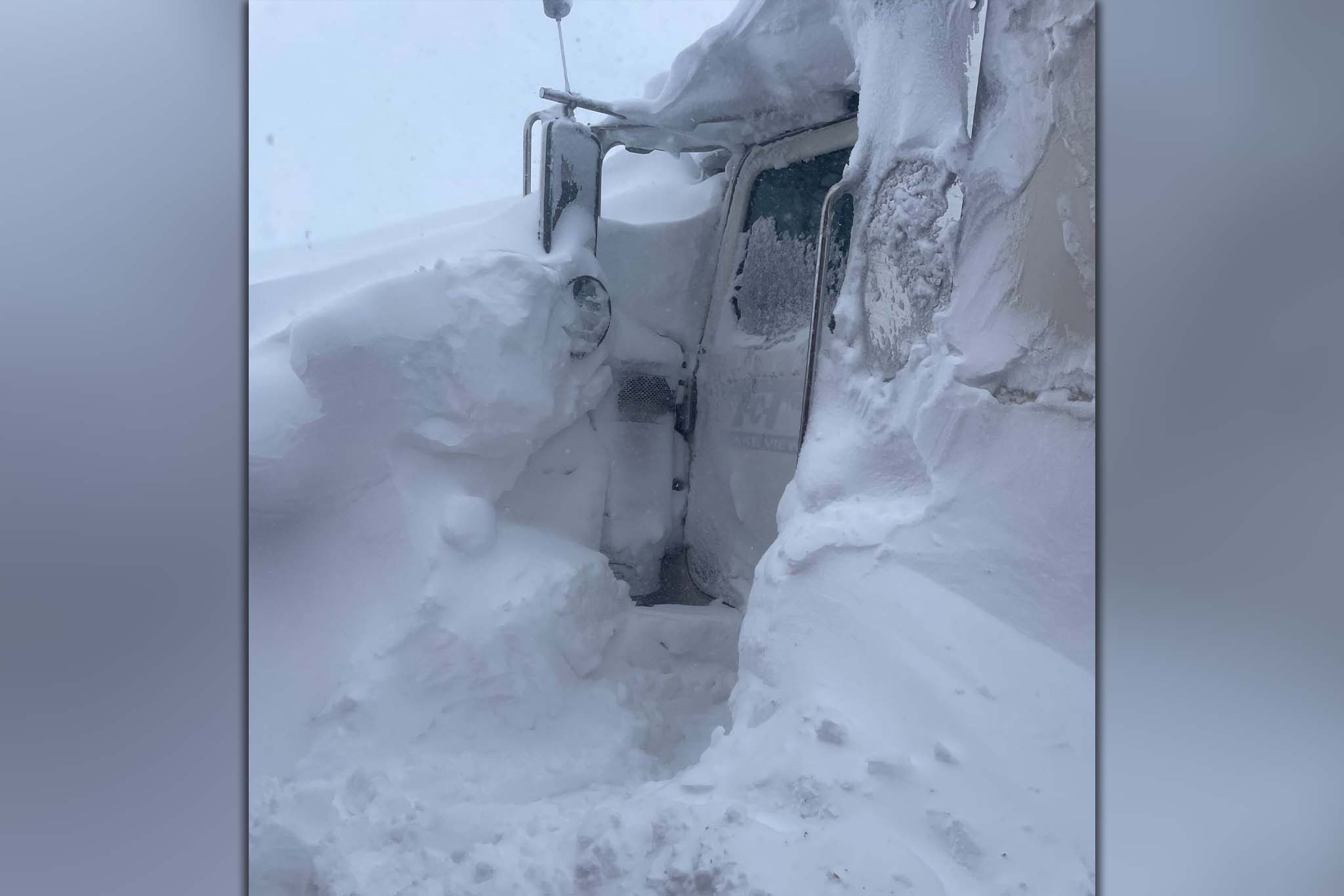 Quail explains that prior to his truck being recovered completely, a local with a piece of heavy equipment was able to clear its front end so the radiator could breathe. Photos show snow piled near the top of the Peterbilt’s sleeper; combined with the weight of the load, this made it especially tough to yank out.