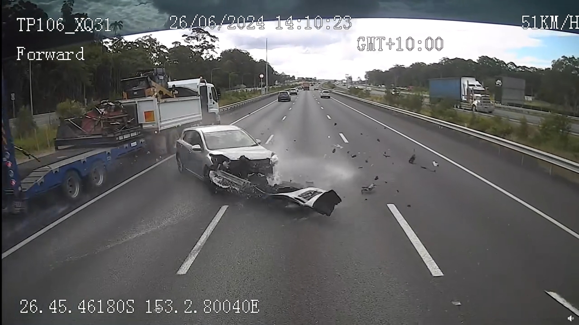 Time lapsed? Forty-one seconds. The Mazda driver was able to exit his vehicle, but it’s unknown if there were injuries or passengers. At that point, the Subaru was far out of the frame. The debate continues as to who was the instigator. Yes, the Subaru caused the crash, but why? Was the Mazda excessively tailgating? Was the Subaru looking for a quick insurance scam payout? But the Mazda needed to crash into the Subie for that to happen. According to the original poster, the truck is part of a fleet of haulers belonging to Brisbane-based Team Transport & Logistics, and police are investigating the incident.