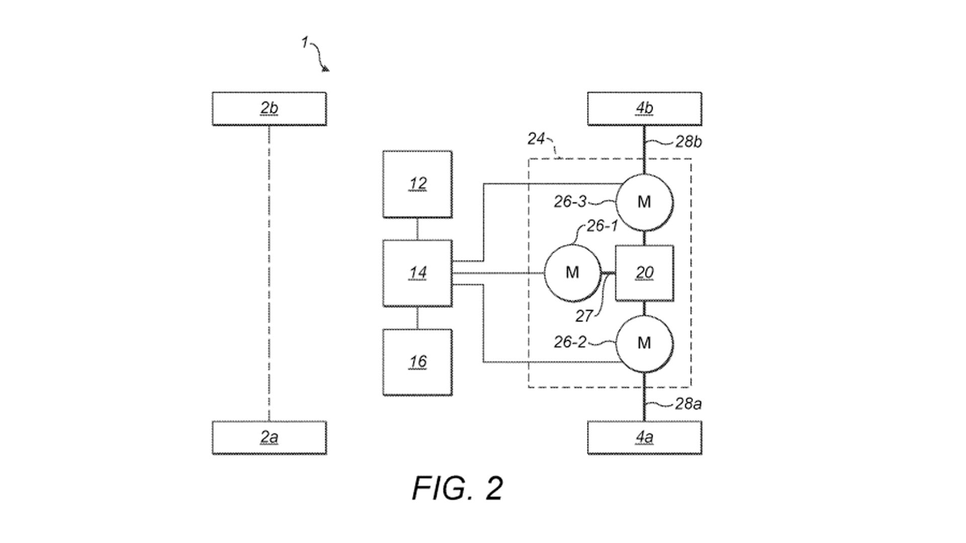 Using three motors in tandem with a differential is an interesting choice. Driving one output shaft in a differential will spin the other in the opposite direction unless it has some sort of locking or limited-slip mechanism. This means one of the outside motors driving an axle will also apply a torque in the opposite direction to the other axle. Synchronizing both outside motors might be a challenge, and indeed, it’s one McLaren anticipates. The patent states the center diff could be a locking unit, which would simplify the process of the outside motors applying torque strictly for driving the vehicle forward.