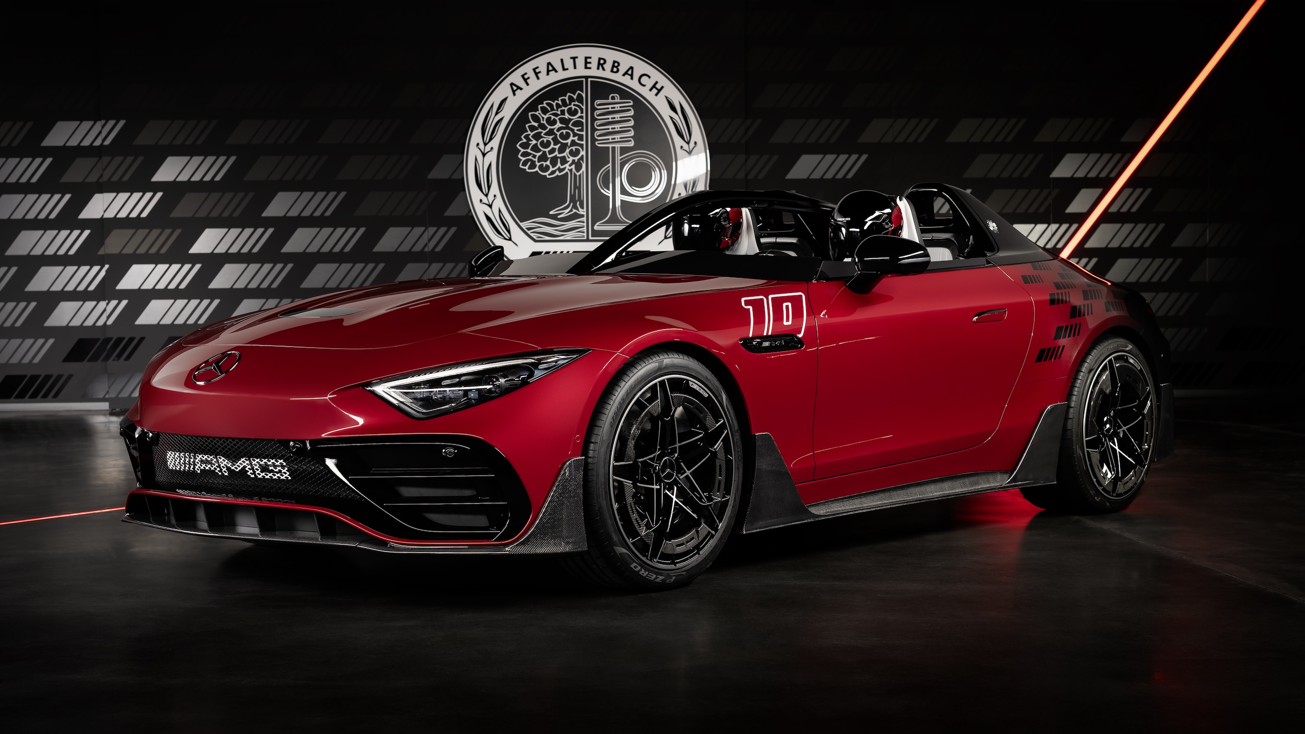 It’s an open-air two-seater a lot like those speedster-style specials Ferrari and Aston Martin were so fond of a few years ago. There’s no roof, there’s no windshield, there are no side windows, and the thing protecting occupants from getting crushed in the event of a rollover is indeed a Formula 1-style Halo. It’s essentially the official car for people who like to cosplay as George Russell but are still waiting for (or can’t afford) the AMG One hypercar. It even comes with two aero-optimized helmets.