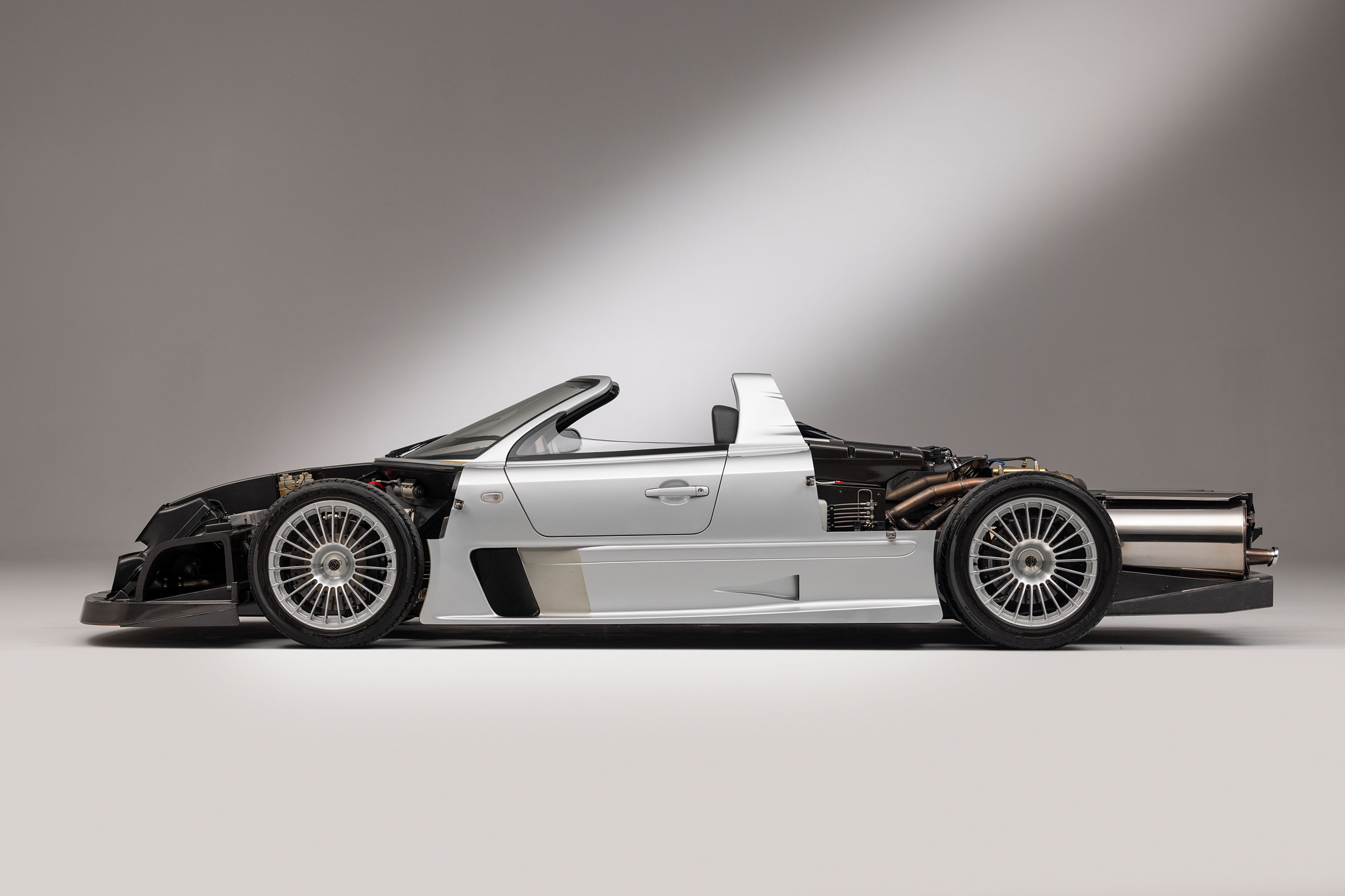 To a particular niche of enthusiasts who grew up on Need for Speed and the golden era of GT racing, the CLK GTR needs no introduction. It’s literally one of the first results when you Google the words “homologation special,” and it’s instantly recognizable whether you’re aware of its on-track prowess or not. In total, Mercedes made 28 roadworthy examples of the thing, including two prototypes. But it’s the roof-free versions that are the most curious, both because they came a little later than the rest, and because the very idea of a no-lid variation of a race car designed to have one strikes a little contradictory.