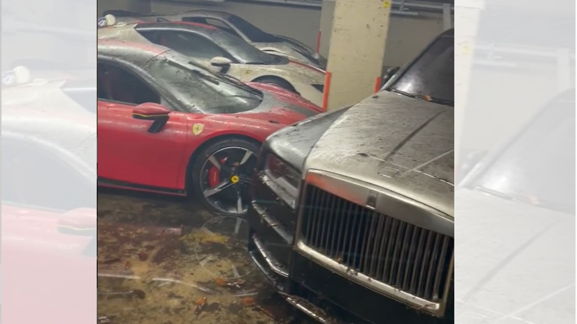 In the clip posted by Instagram user Florida_Corvette_Owners, 10 or more cars with six-figure price tags are presumably stranded in an underground parking garage after rainstorm flooding. The Drive staff spotted two Rolls-Royce Cullinans (one potentially a Mansory), a C7 Corvette, a Ferrari 488, a Ferrari SF90, a Ferrari Roma, a Plymouth Prowler, a McLaren SLR, and a Mercedes-AMG GT Black Series in the mix, all covered in post-flood muck. It’s painful to see it.