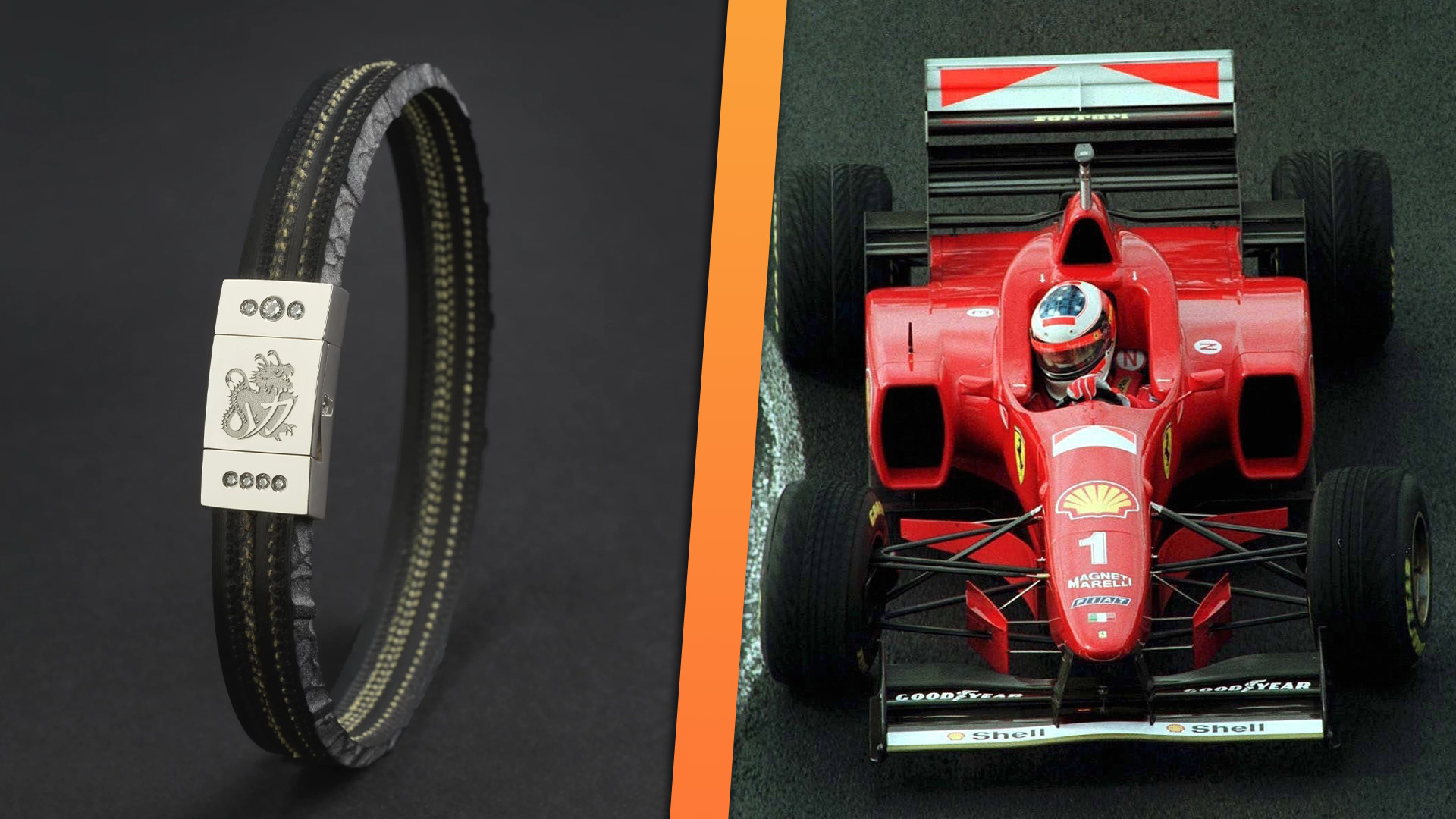 The Schumacher family’s Keep Fighting Foundation partnered with Monegasque jewelry brand Mongrip to launch a new accessory collection called MZ96. The limited-edition run consists of 91 bracelets crafted from the rubber of Schumacher’s winning tire from the 1996 Italian F1 Grand Prix.