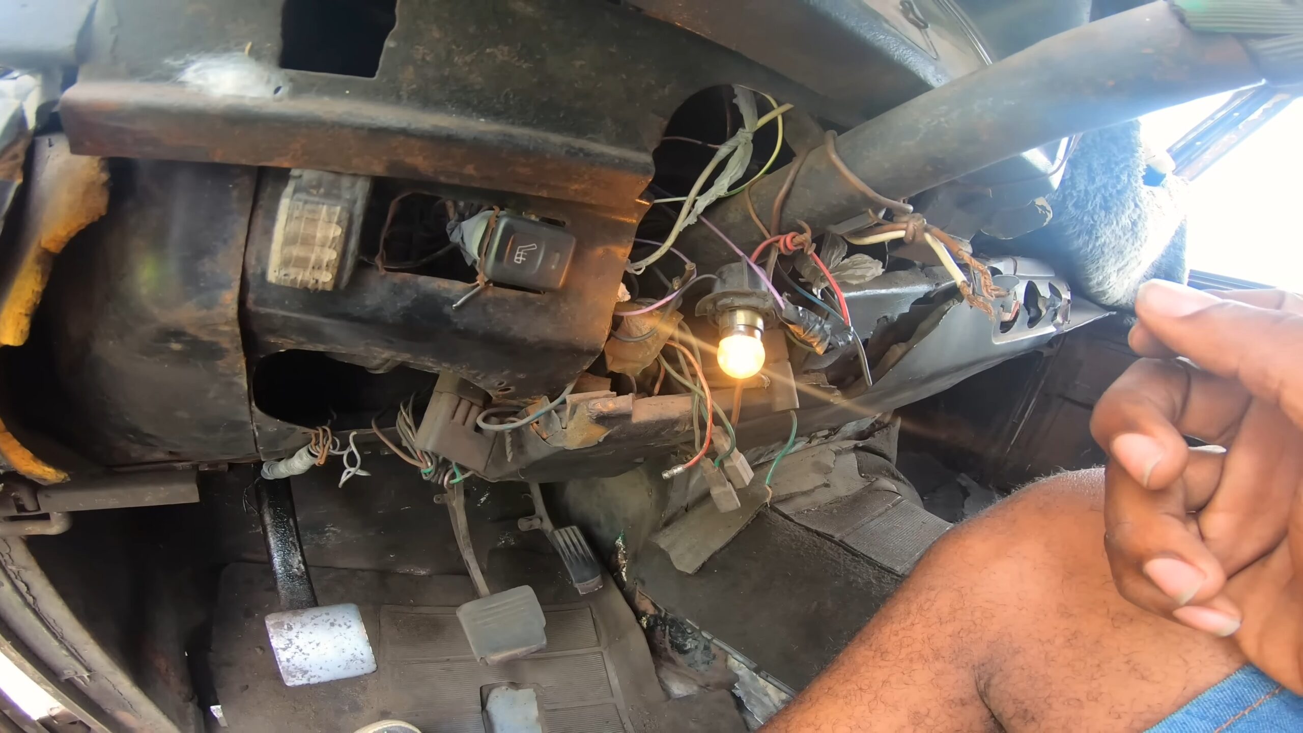 Starting the car is a simple process. First, you hit a switch labeled for heated seats that’s dangling under the dash, and a loose-hanging bulb lights up. The switch has been repurposed to energize the car’s electrical system, akin to turning the key to the “On” position in a normal vehicle. There’s no working starter motor, though. The Defender must be push-started instead.