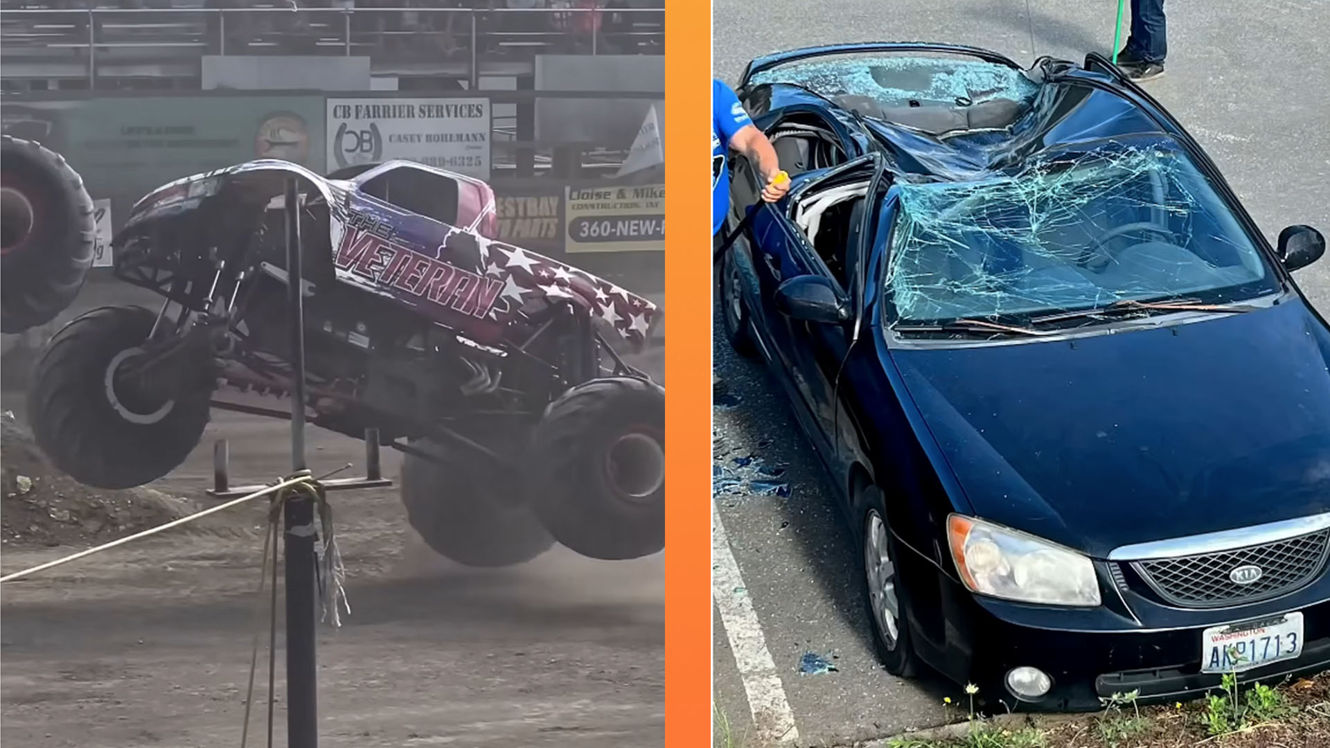These two videos, one from gagasolineaddiction and the other from monstertruckswashington, capture the terrifying situation from two different angles.