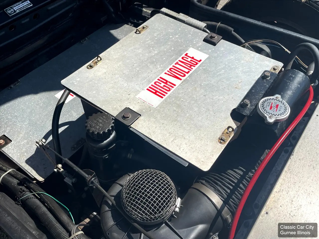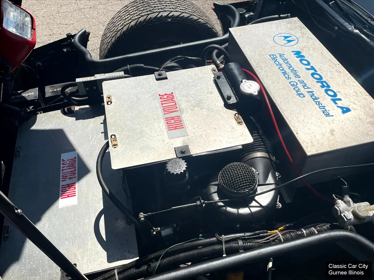The Motorola E-Vette’s electric motor made a whopping 272 peak horsepower, which was a bit more than the 250-hp factory model. But, according to a spec sheet, the car was theoretically capable of producing 428 hp with the right power supply to it—though it was limited mostly by the space where it could fit battery storage. In theory, with the right battery pack and conversion to an AC synchronous motor setup, the car could peak at a whopping 800 horsepower.