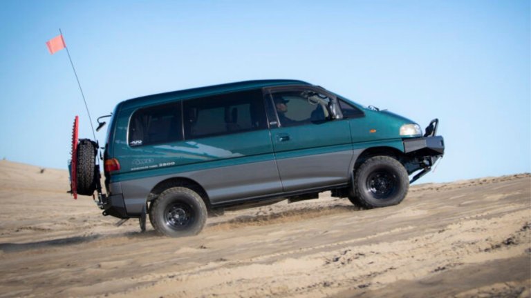 Preparing the Delica Mini for rally support duty required making numerous modifications. It features a lift kit, relatively meaty all-terrain tires, and a roof basket, among other aftermarket add-ons. I absolutely love the red mudflaps, which look a lot like the ones you’d see on an Evo. There’s no word on whether Mitsubishi made mechanical updates. Stock, this 133-inch-long van is powered by a 658cc three-cylinder engine rated at merely 52 horsepower. It’s also available with a turbocharged version of the triple that puts 63 horsepower under the driver’s right foot.