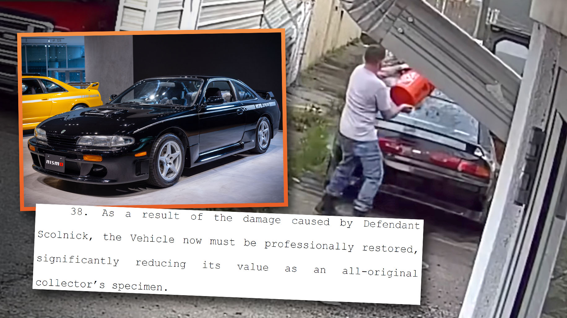 The debris caused “extensive damage” to the car such as chips, scratches, and dents, according to the lawsuit, and it also left blemishes on the lights, the decals, and the glass. The nearly $8,000 that Scolnick has already paid in restitution should cover at least part of the repairs, but the lawsuit focuses on the 270R’s originality. Bahna claims the coupe was a matching-numbers example in “mint condition” that was still wearing its original paint and decals. He adds that it now needs to be professionally restored, which will significantly reduce its value as an “all-original collector’s specimen,” and that a deal to sell the car for $500,000 fell through following the incident. He claims that he’s been unable to sell it since.