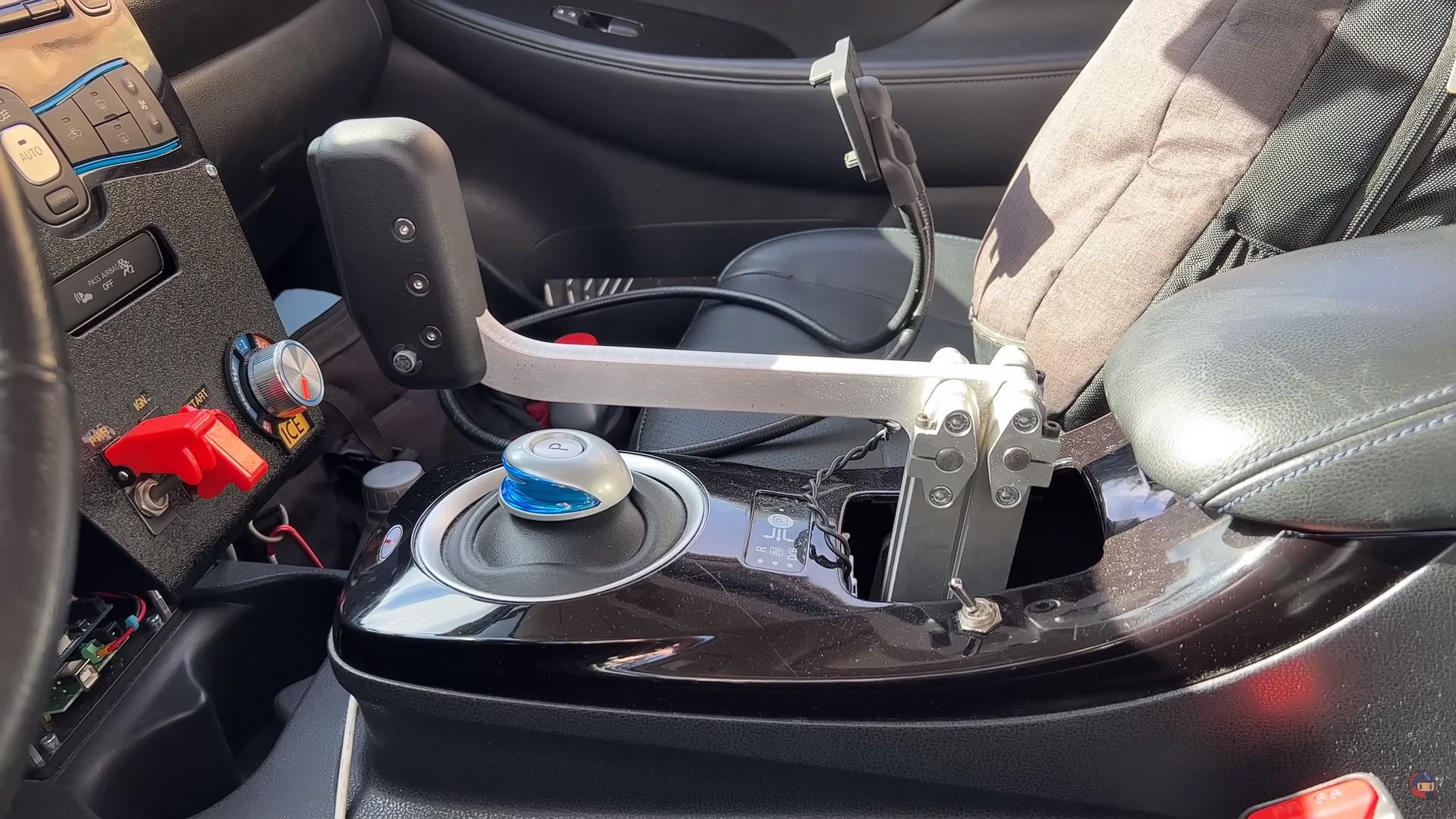 You might think that after swapping the Kawasaki engine Young scrapped the Leaf’s stock powertrain, but the opposite is true. Not only did he keep the stock electric motor and battery, he turned it into a fully functioning, all-wheel drive plug-in hybrid. A dial on the dashboard adjusts the level of hybrid intervention he wants, so the Young can choose from a 1:1 hybrid setting (both the electric motor and engine equally), pure EV mode, and an engine-biased max power mode.
