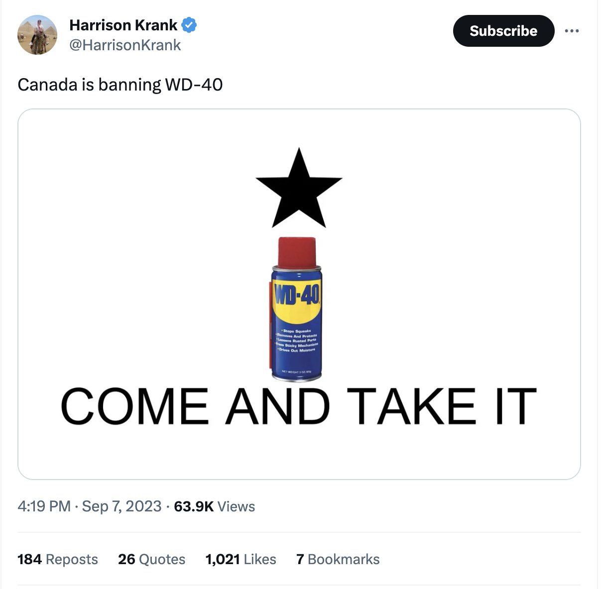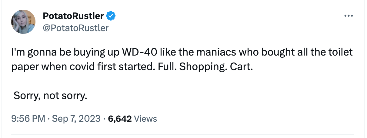 Case in point: many Twitter users were very upset when a rumor circulated late Thursday afternoon that WD-40 would be federally banned in Canada starting in 2024 in response to climate change. Just look at the maple syrup-fueled uproar: