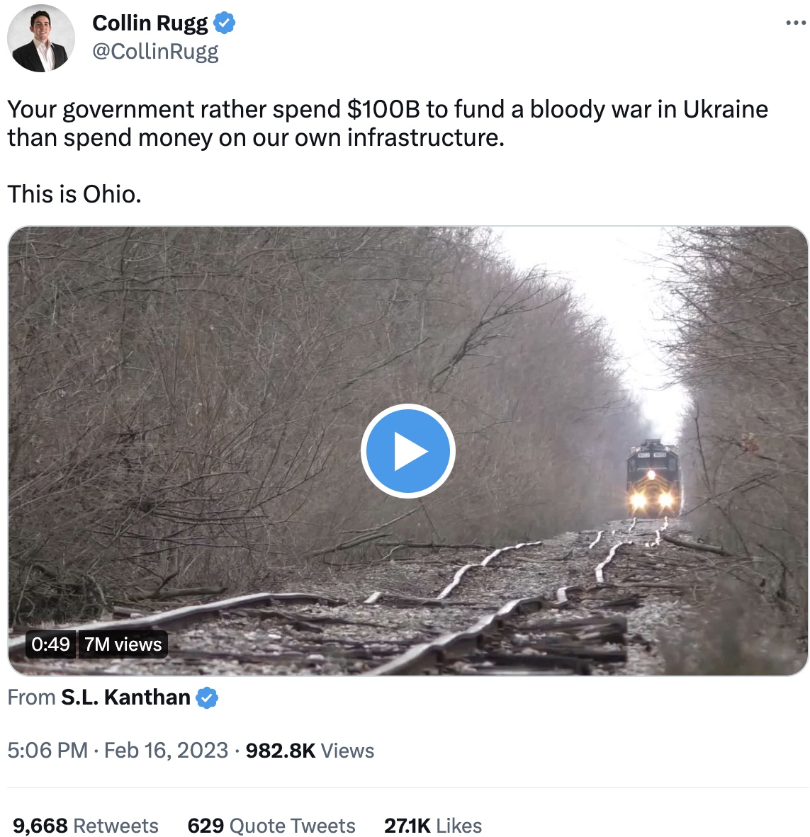 Miscaptioned videos have reached millions on Twitter, both through possible bot activity and factually incomplete or inaccurate posts from political commentators. One even insinuated the deteriorated track had gone unfixed because of military aid sent to Ukraine. As previously mentioned, the rail line in the video is hundreds of miles from East Palestine and has already been repaired. On top of that, funding for the fix may have come in part from the federal government, which granted the ND&W $4.1 million for safety improvements according to a 2020 Pioneer Rail release.