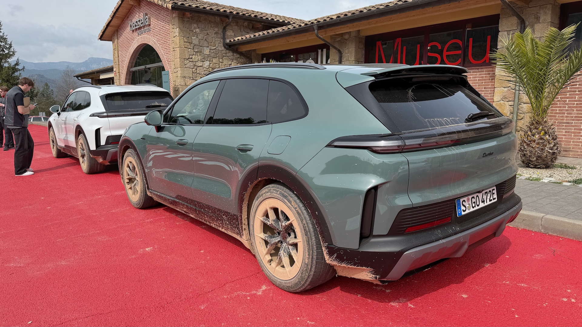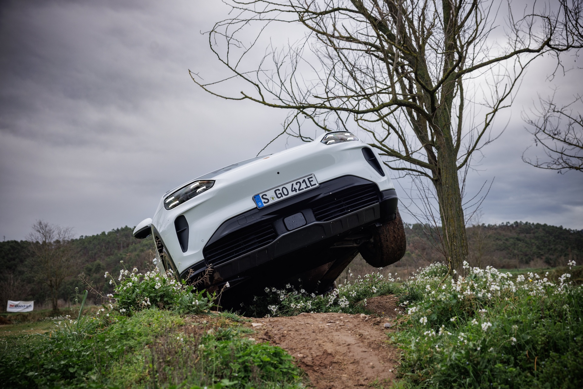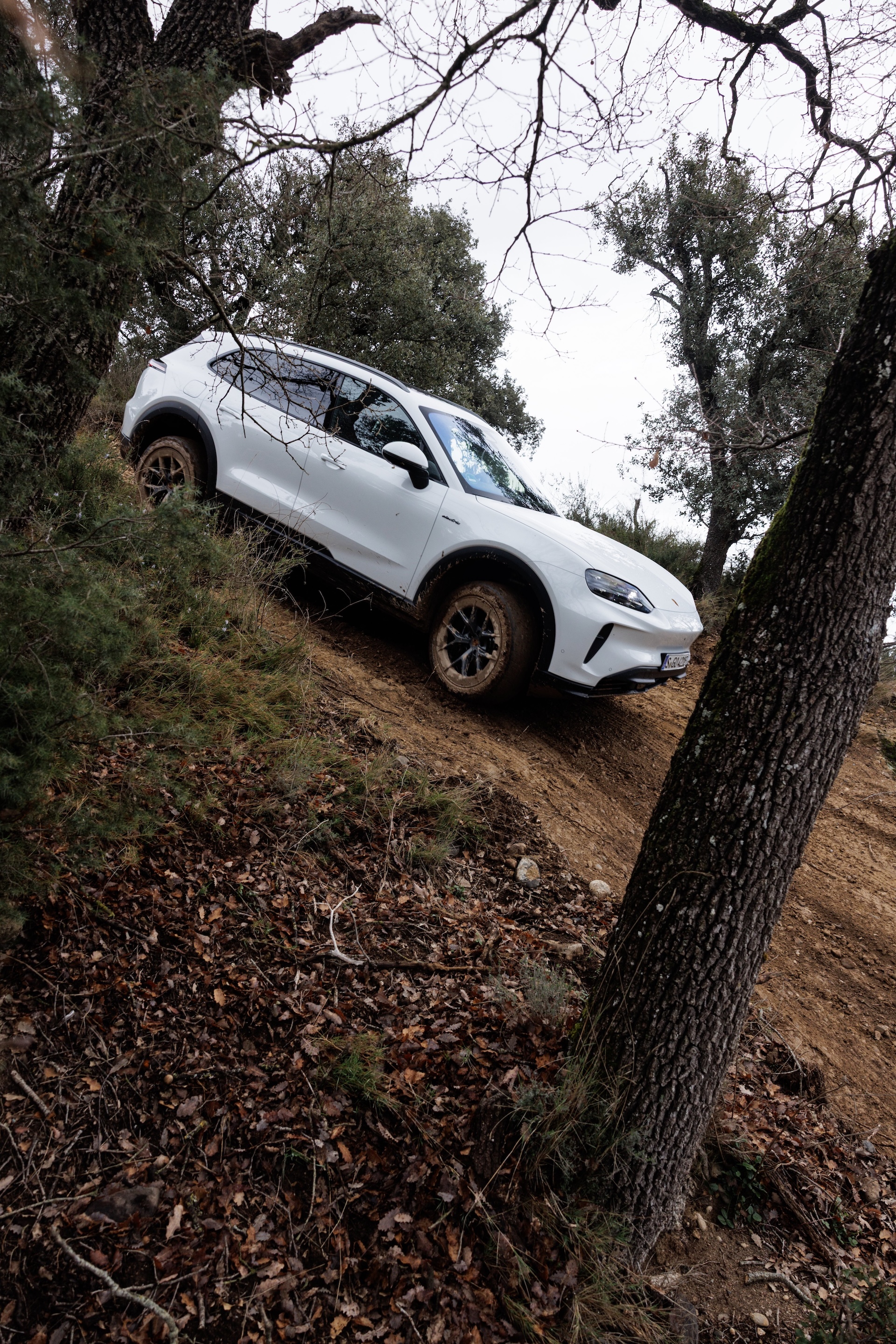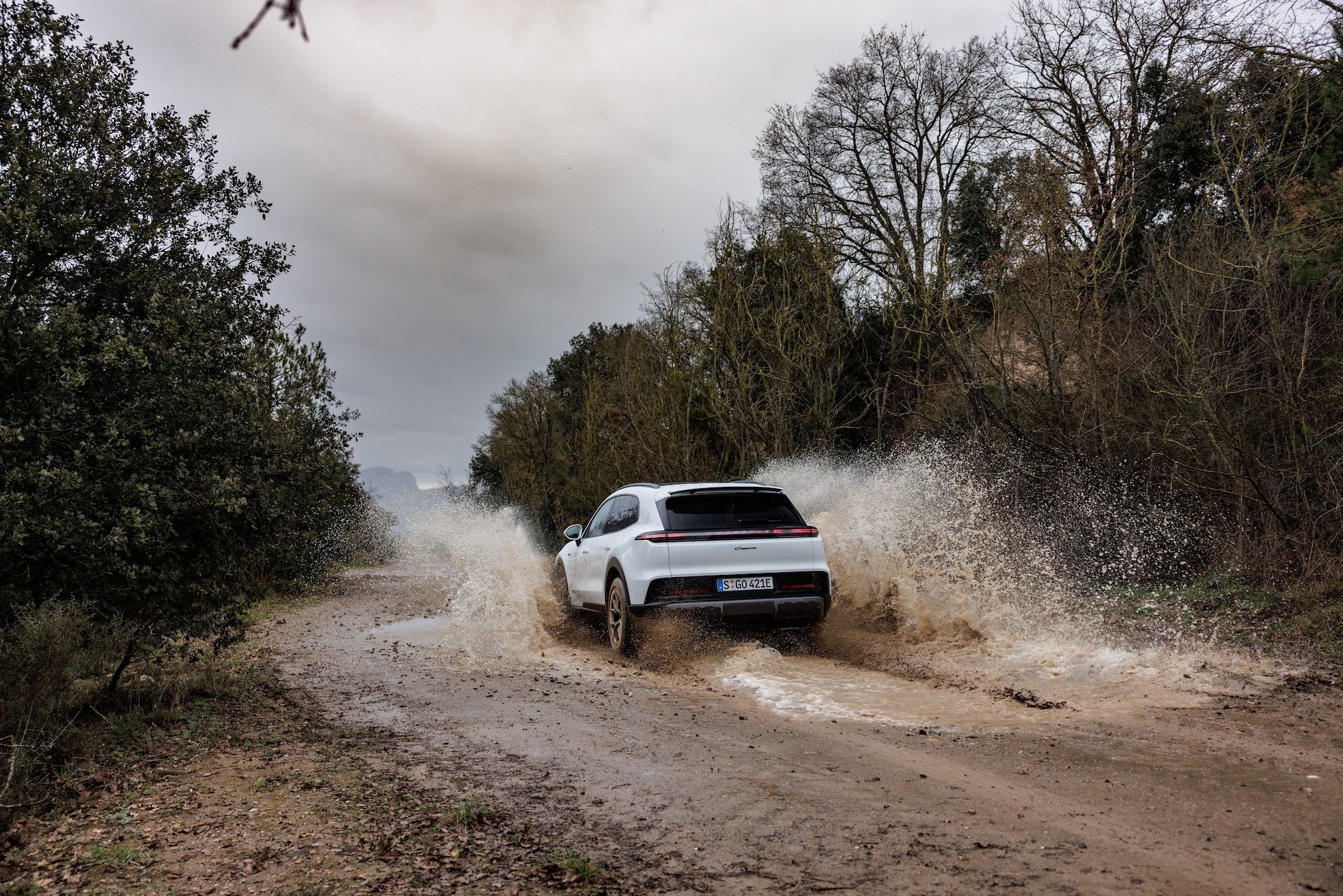 After spending the day driving on WRC-worthy mountain roads, it was the Cayenne Electric’s turn to gently slide down the first of many steep, muddy hills.