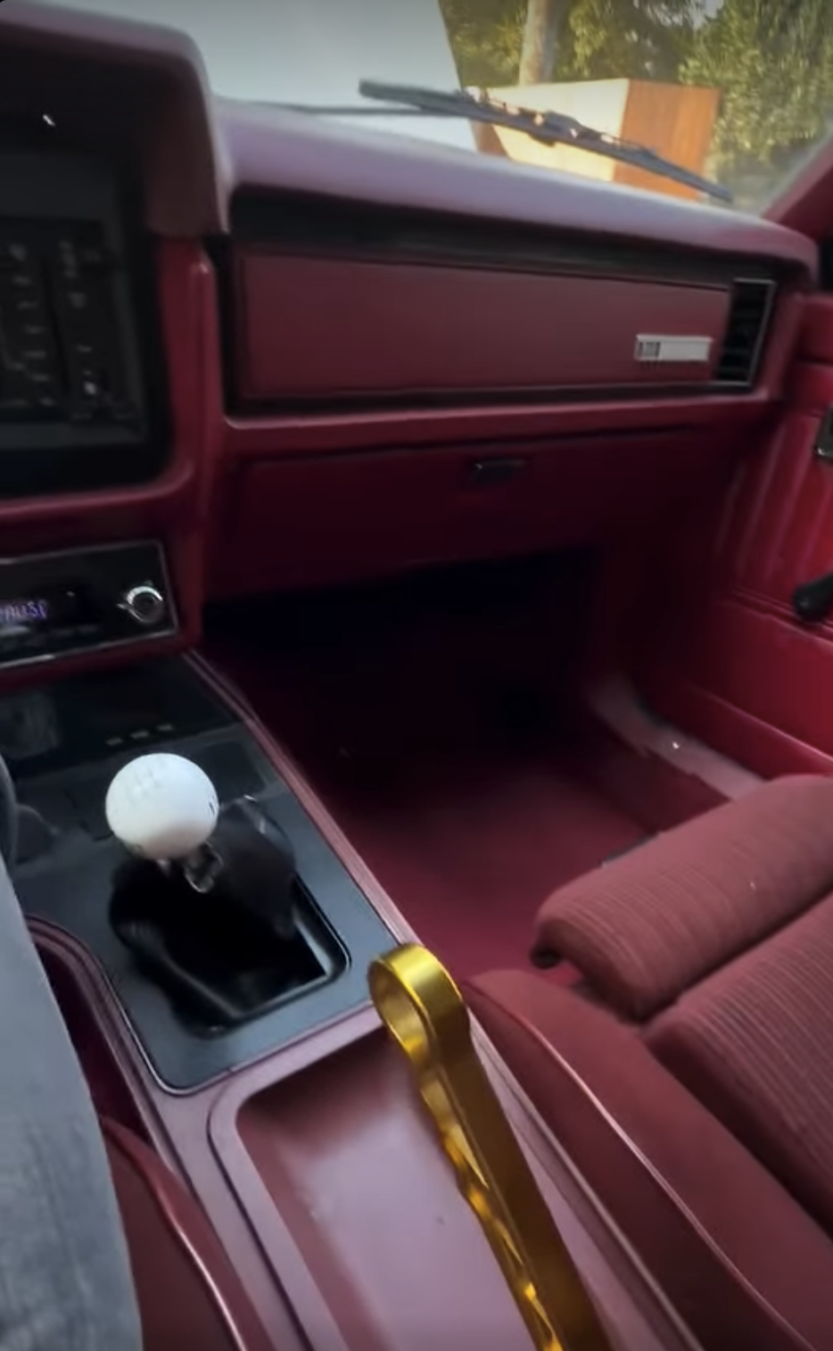 What’s underneath is just as slick. There’s a Gen 3 5.0-liter Coyote V8 in place of the anemic inline engine that used to power the car, and from the looks of it, Shepard left it stock. That still puts it around 460 hp and 420 lb-ft of torque at the crank. There’s a six-speed manual with a cue ball shifter inside and even a golden drift brake to match the wheels. The suspension is far from stock, too, with adjustable coilovers and Mustang Cobra IRS. All of that pretty much fixes the biggest gripes about the Fox body Mustang so I don’t wanna hear nothin’ from you guys who only have somethin’ negative to say.