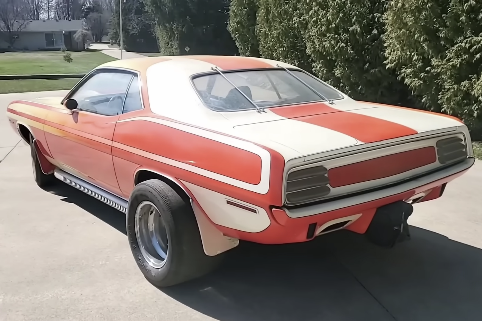 As documented by Auto Archaeology on YouTube, the car went into storage in 1976, where it remained until this year. The Barracuda may have fewer miles on it—967—than it does cat paw prints, which dot its flaking paint. For the most part, it’s in good shape, with Auto Archaeology noting its new-car smell to still be present before interviewing its builder, Chuck Miller.