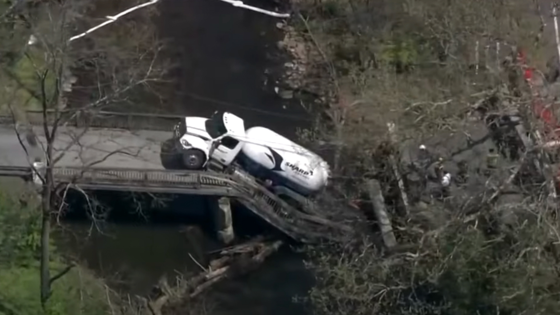 A propane truck fell through a wooden bridge in Emmaus, Pennsylvania, in a completely avoidable incident that could have cost the driver their life. The Sharp Energy trucker was reportedly transporting a full load on Tuesday afternoon, April 29, when they decided to turn onto the wooden bridge that connects Orchid Place with the Wildlands Conservancy. They barely made it a full truck’s length before the structure collapsed, dropping the tanker into Little Lehigh Creek.