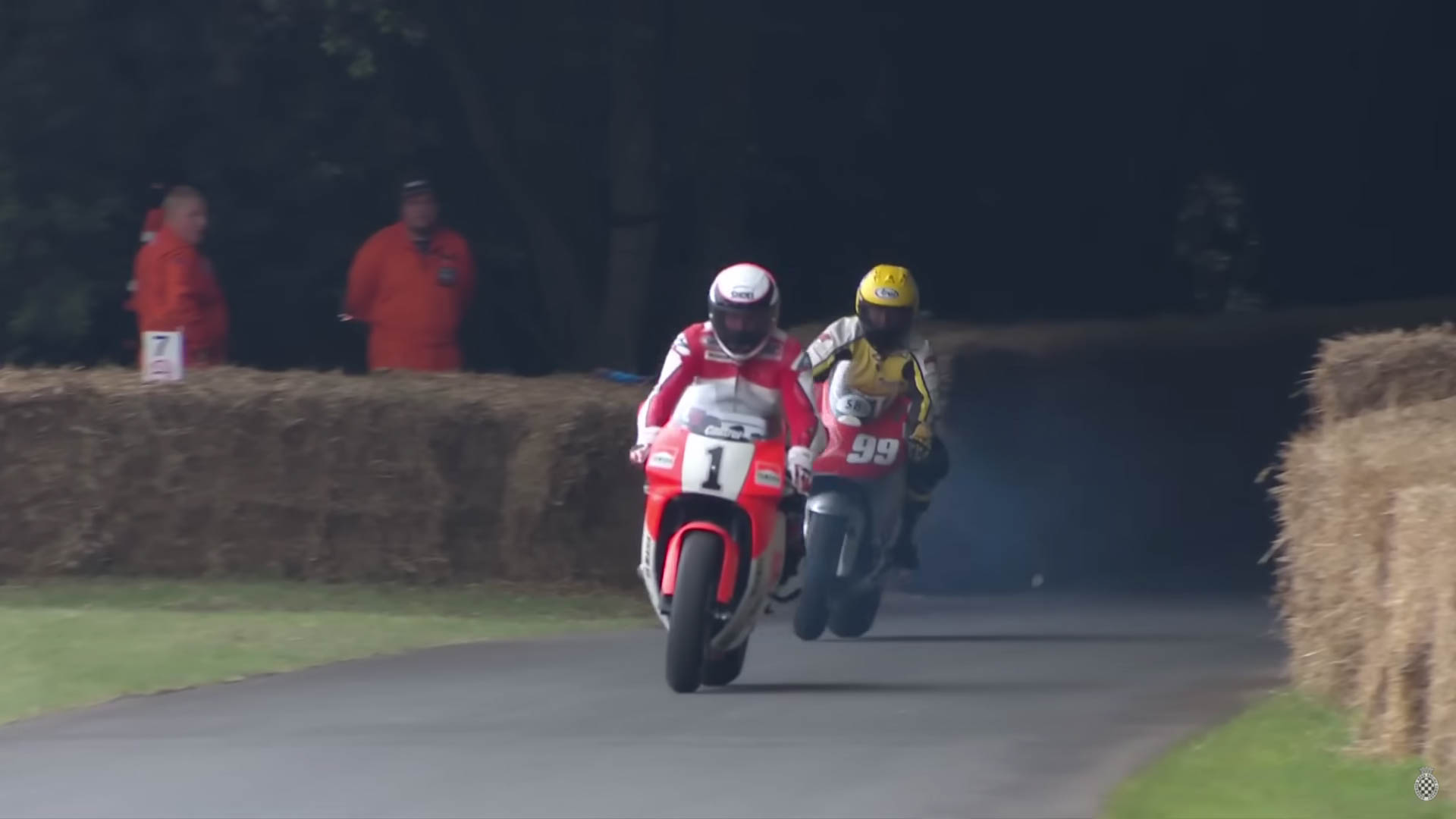 Rainey was an absolute dominant force in early ’90s MotoGP, winning the championship three years in a row with Yamaha, during a time when MotoGP bikes were difficult and unpredictable. Rainey’s team principal during those championship years was another former MotoGP champion Kenny Roberts, who joined Rainey at his ride, thirty years later, on the iconic hill at Goodwood, making the moment even more emotional.