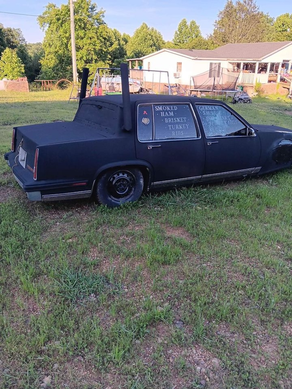 We all love a little backwoods ingenuity, but there are some places where it just isn’t the right solution. Would I trust my mom’s cousin Mark (rest his soul) to fab up a smoker out of scrap? If he started with an old metal drum, maybe. But a 1980s Cadillac Sedan de Ville? I’m calling off the family barbecue if I see this thing roll up. Sorry, cuzz.