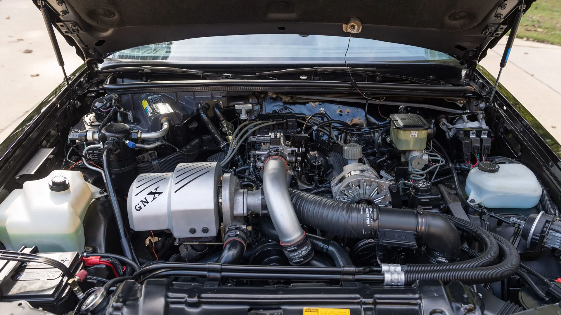 The engine bay is also spotless. Inside you can see the heat-shielded turbocharger. GNXs also received an air-to-air intercooler, which you can just barely see before the intake end of the turbo.
