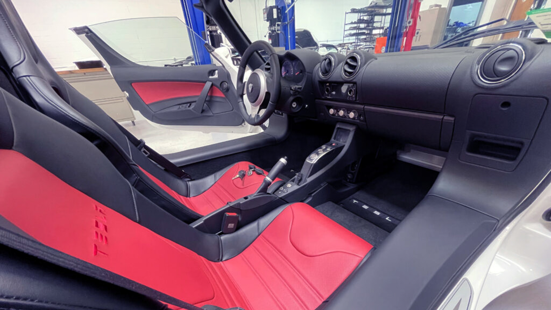 Being a 2010 model, this specific Roadster has a few updates over the original 2008 car, such as push-button gear selection, additional sound deadening, and even manually adjustable coilovers. Its 53 kWh battery pack gave it 244 miles of range, and its 288 horsepower could get it to 60 mph in just 3.9 seconds. Considering its battery size and odometer readout, this Roadster has barely used a sixth of its original battery charge capacity.