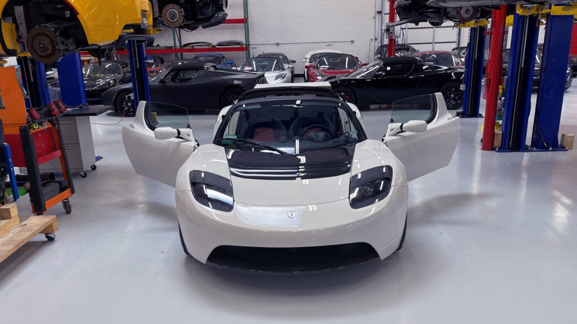 This 2010 Tesal Roadster is being auctioned but Gruber Motors in Phoenix, Arizona, a shop that specializes in repairing, modifying, and selling electric vehicles. And with just 38 miles on the odometer, it’s one of the lowest-mileage Roadsters known in existence, right up with those zero-mile units unearthed in China. It’s likely been a long time since most of us even thought about the OG Tesla Roadster, so it’s easy to forget how cool it was at the time. The Roadster was built on a modified Lotus Elise chassis, which is evident in its design and driver-focused interior, and it even features carbon fiber body panels.